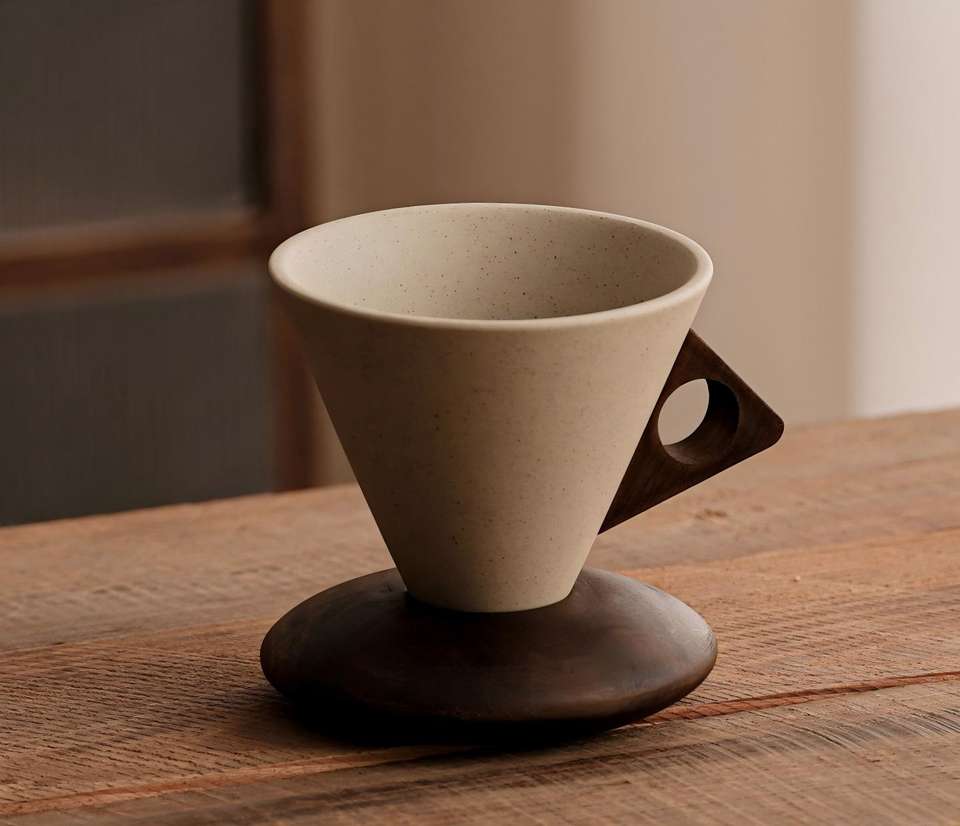 Nom du produit:Tasse à café en poterie brute avec base en bois