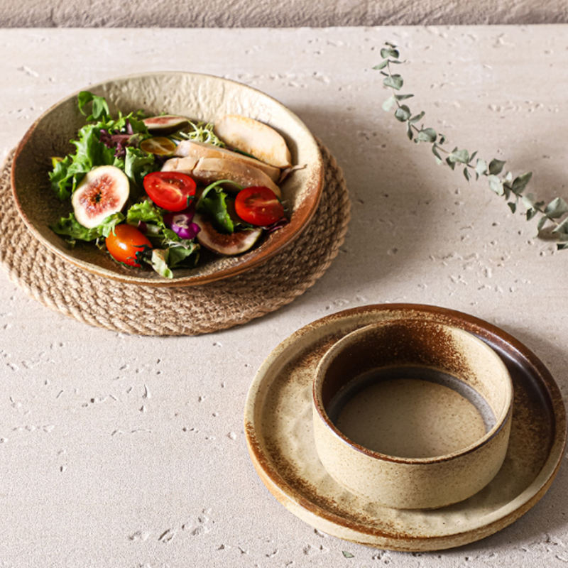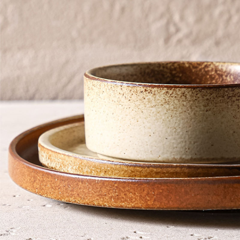 Service de table en céramique rétro avec bol, porcelaine haute température pour la maison, l'hôtellerie et la restauration
