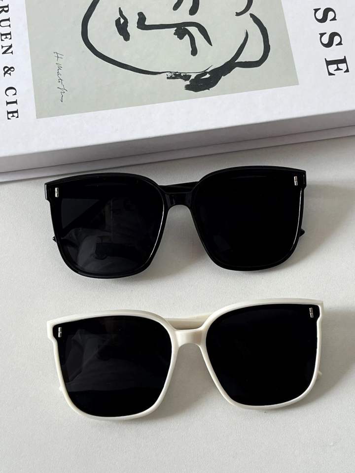 Lunettes de soleil rétro classiques carrées à grande monture noires et blanches pour unisexe avec protection UV400