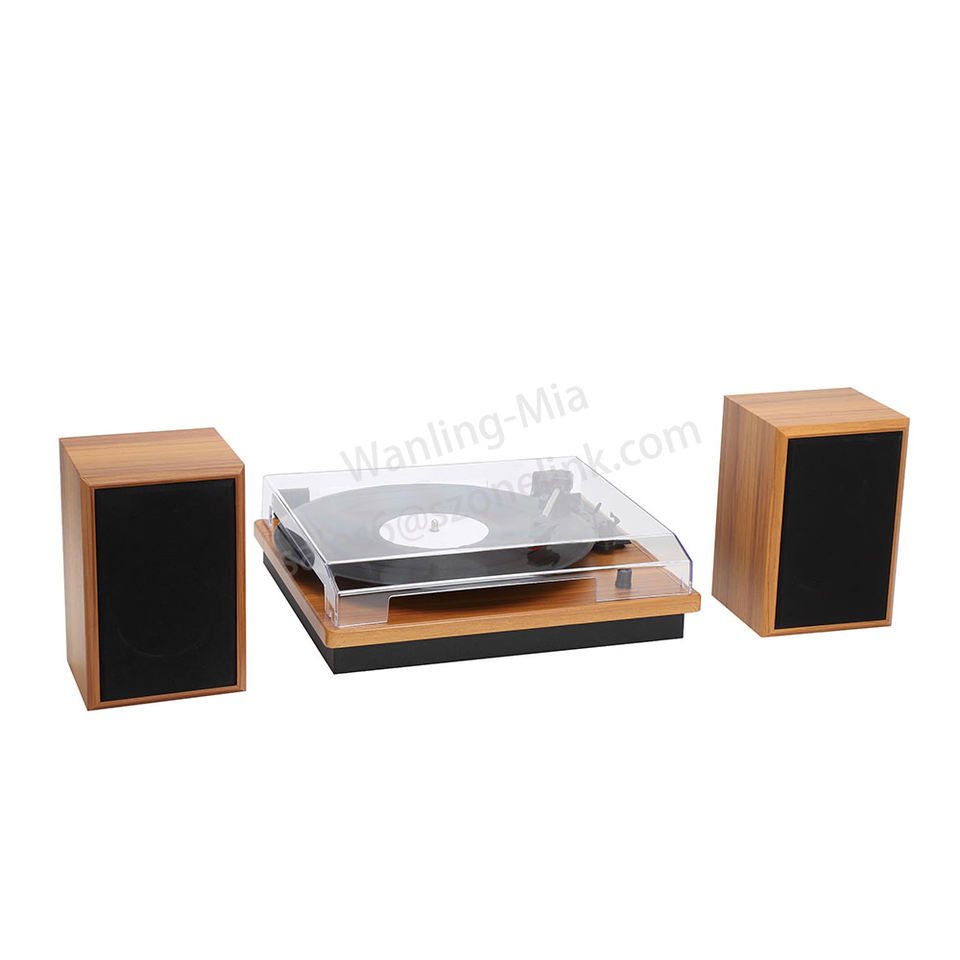 Tourne-disque en bois rétro style classique avec bluetooth Play 2*10W Haut-parleurs externes Phono avec cache-poussière Tourne-disque