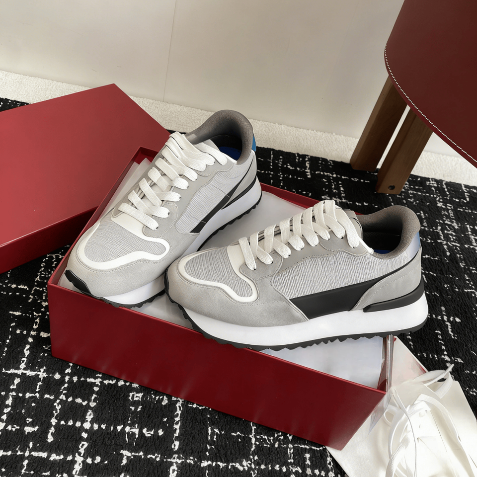 Sneakers de course rétro pour homme en matériaux mixtes gris avec accents noirs et blancs pour le streetwear quotidien