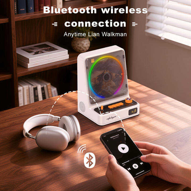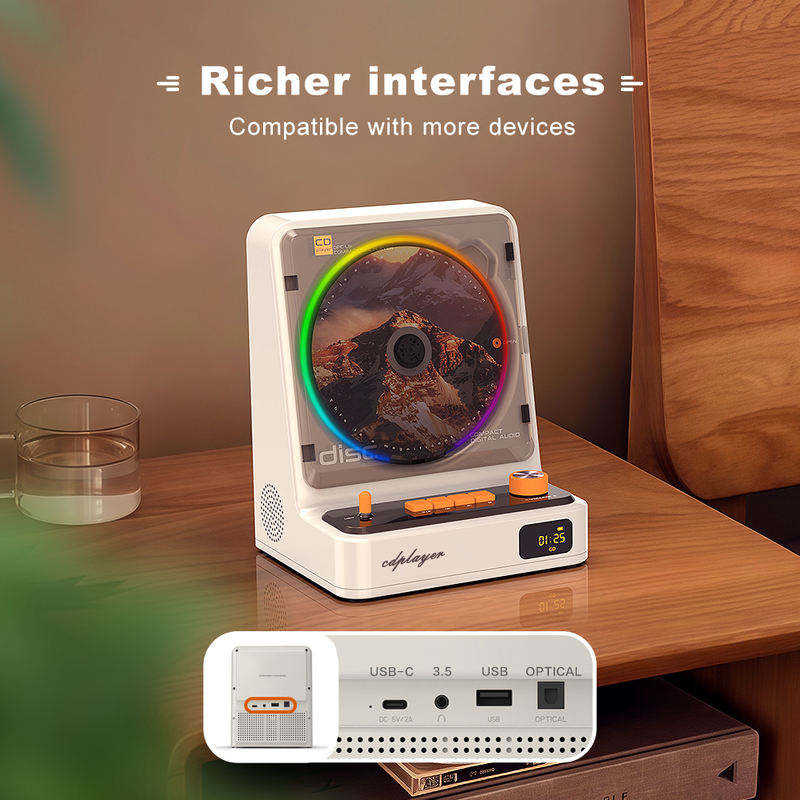 Lecteur CD portable rétro avec blocs de couleur, couvercle anti-poussière de bureau avec écran et bouton de commande, lecteur de musique audio HiFi