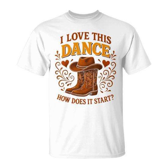 T-shirt rétro Country Line Dancer avec motif « Comment cette danse commence-t-elle ? », taille adulte
