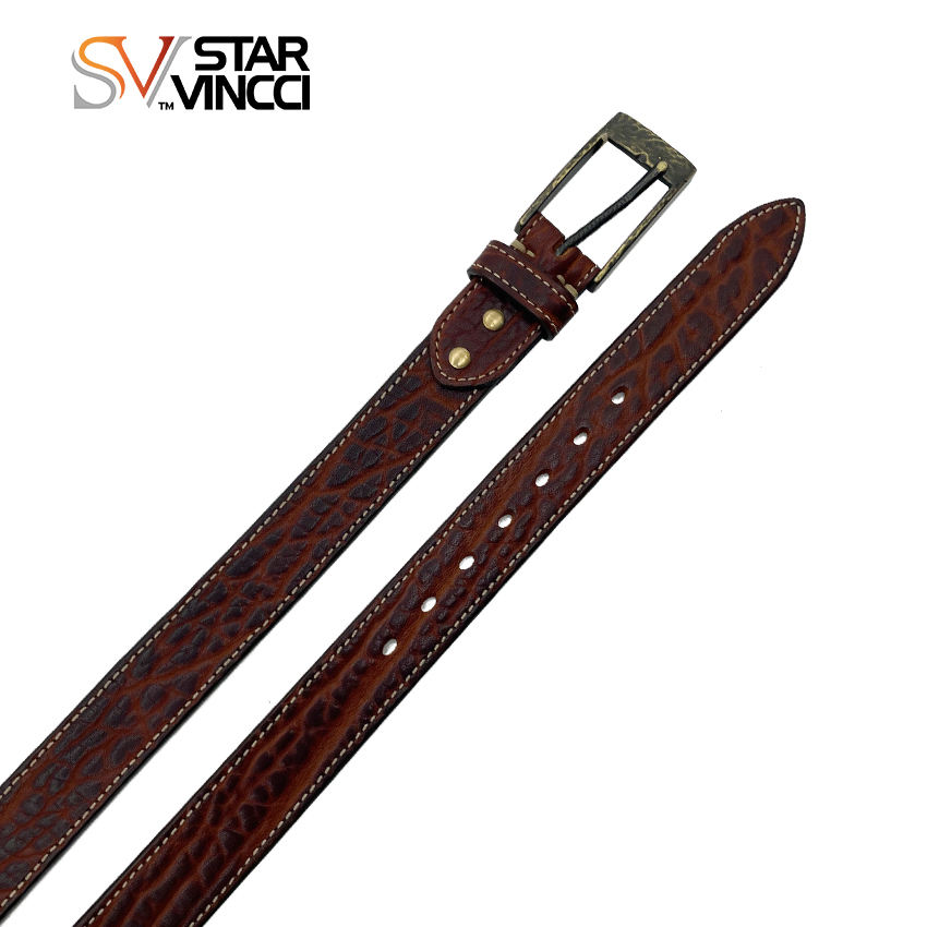 Ceinture en cuir de vache décontractée pour homme, style rétro, avec embossage craquelé, boucle en alliage et design tendance