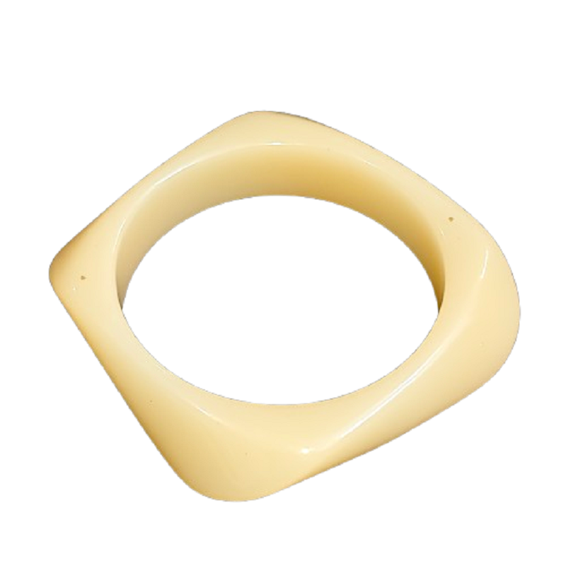 Bracelet en résine carré rétro couleur crème ivoire, bracelet géométrique épais en acrylique, bracelet large en résine au fini lisse d'inspiration vintage