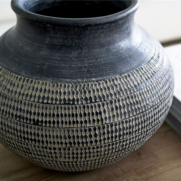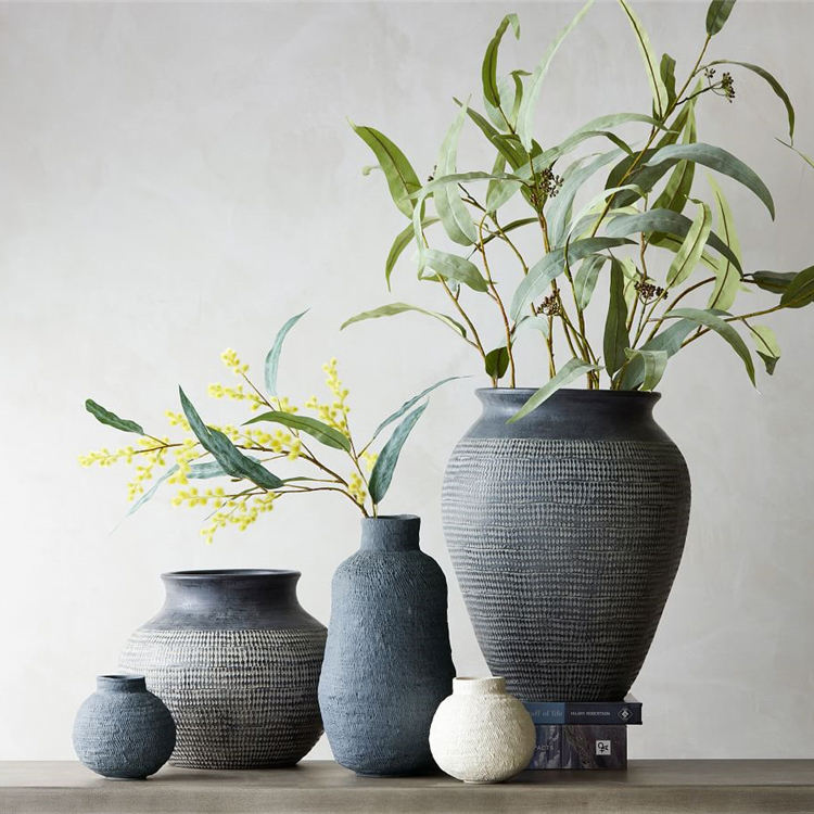 Vase à fleurs de salon en relief texturé avec logo rétro personnalisé vases à bourgeons vase en céramique pour la décoration intérieure