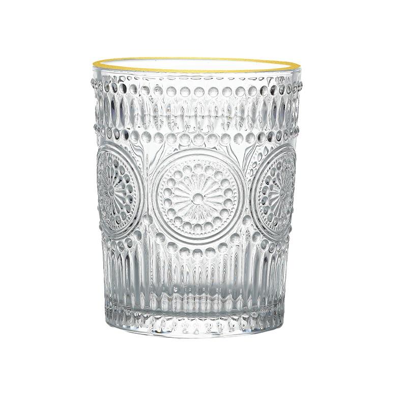 Verre à whisky rétro à motif gaufré, verre à whisky transparent avec bord doré, verre à whisky, eau, jus, lait pour boire