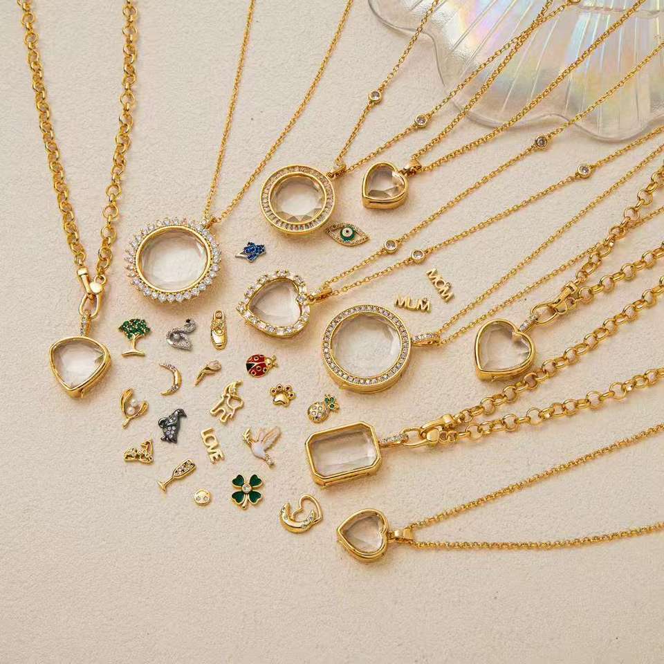 Pendentif boîte photo personnalisable style rétro européen et américain, ouvrable, à faire soi-même, avec étui transparent, plaqué or 18 carats