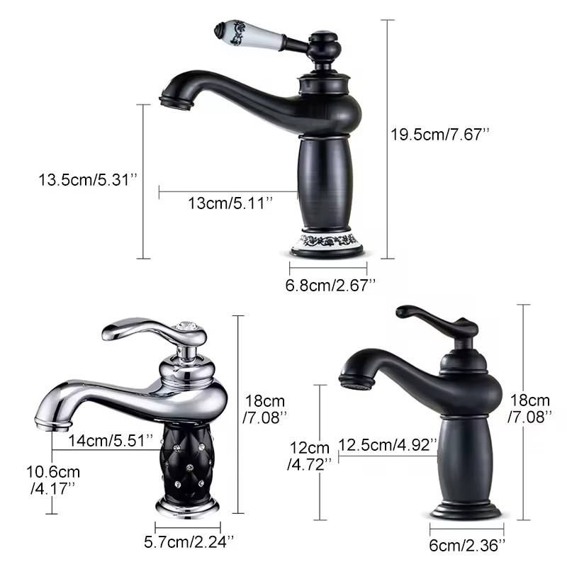 Robinet de lavabo rétro européen doré avec décorations en céramique, finition chromée, monocommande chaud/froid, à poser sur le comptoir