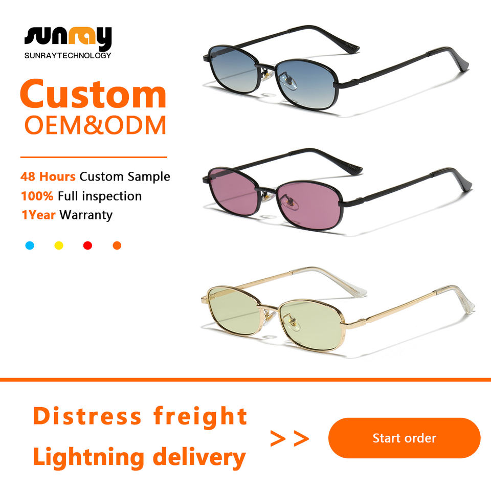 Lunettes de soleil métalliques personnalisées avec logo, style rétro, OEM, pour hommes, protection UV400, unisexe, vintage, vente en gros, verres colorés, forme ovale