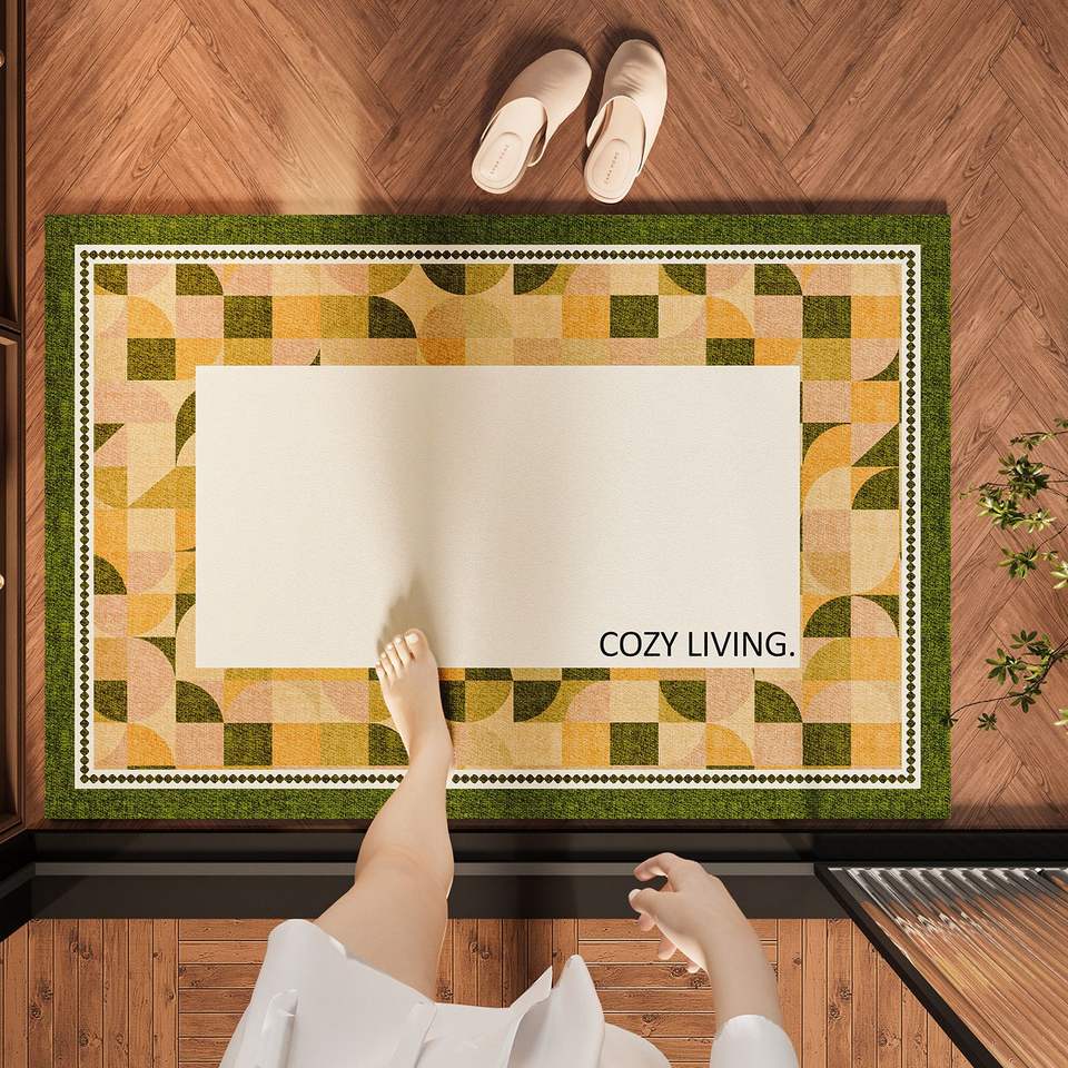 Tapis de bain géométrique rétro en terre de diatomée, ovale, antidérapant, absorbant, pour l'entrée de la salle de bain