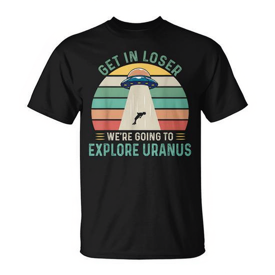 T-shirt rétro « Get In Loser We're Going To Explore Uranus Alien UFO »