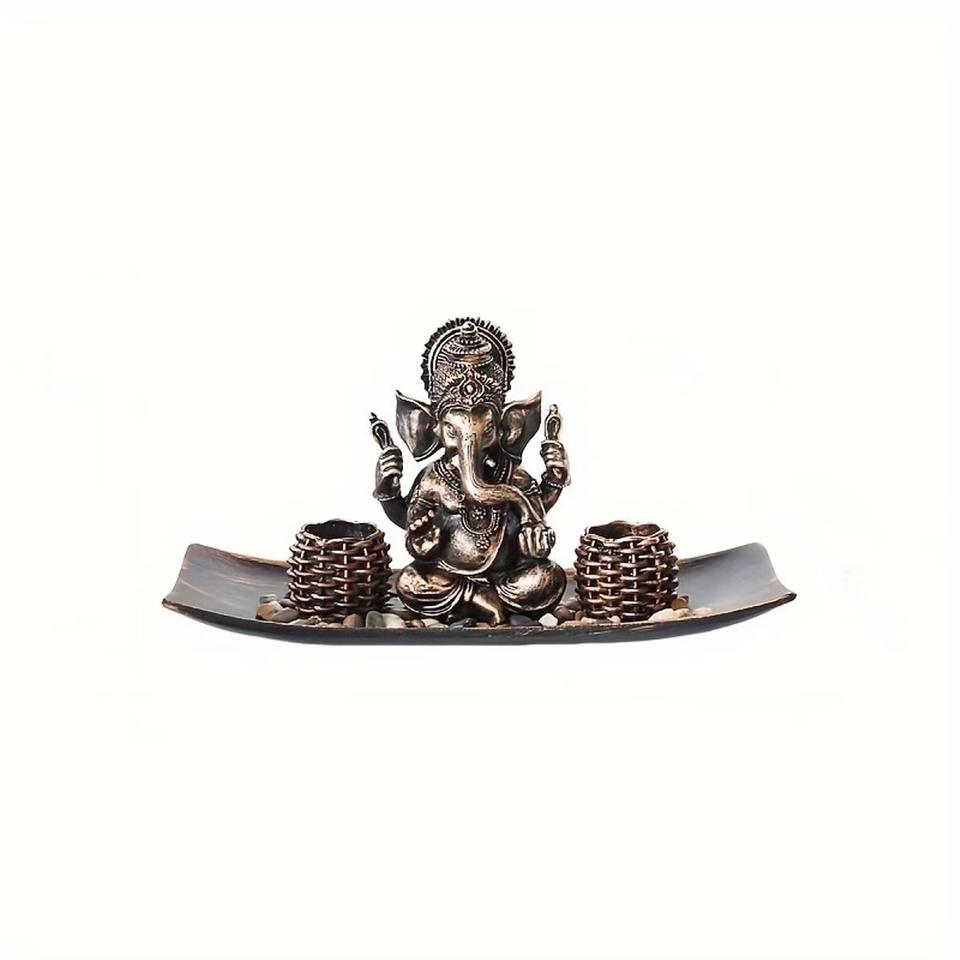 Statue de Bouddha Rétro Dorée, Porte-bougie en Résine, Style Bouddhiste, Décoration Artisanale pour la Maison