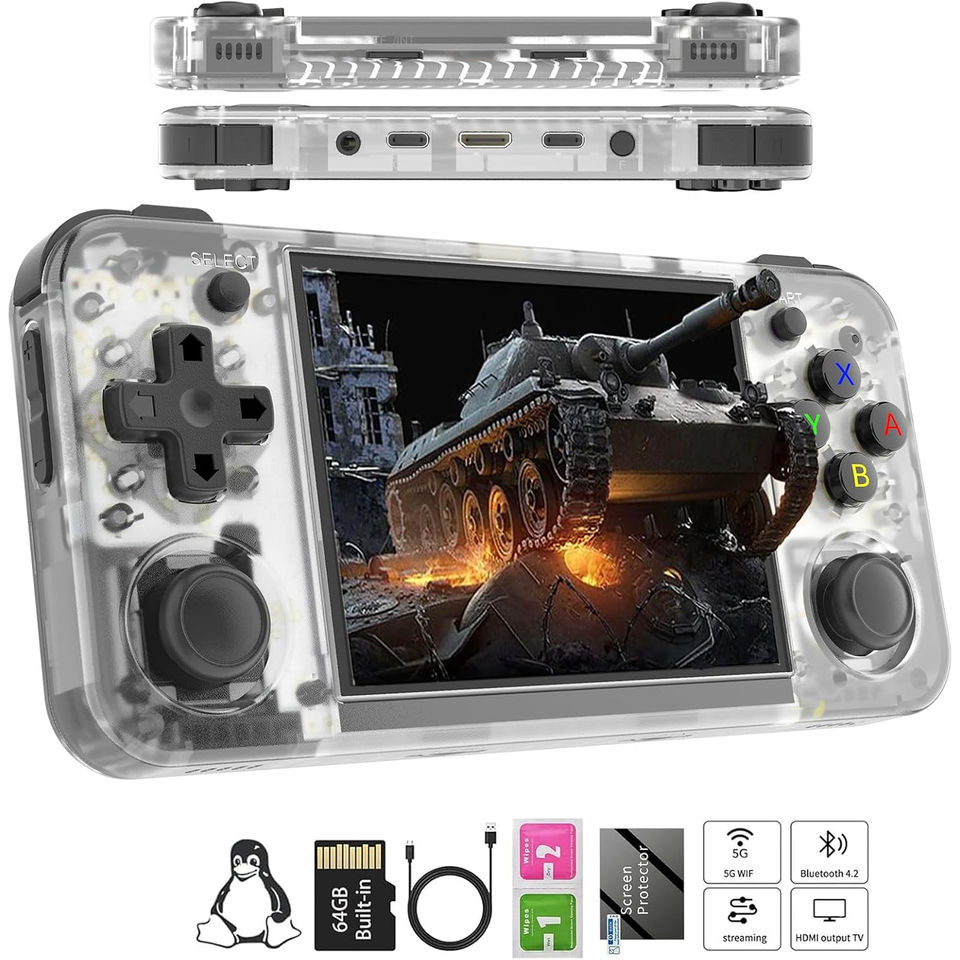 Console de jeu portable rétro, écran IPS de 3,5 pouces, batterie intégrée de 3300 mAh, carte TF de 64 Go préinstallée, plus de 5000 jeux classiques