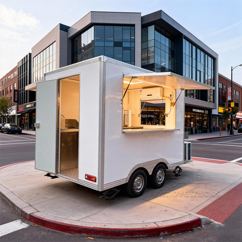 Autre équipement standard:* **Service window:** Guichet de service * **Stainless steel counter:** Comptoir en acier inoxydable * **Cabinet:** Armoire * **Cash drawer:** Tiroir-caisse