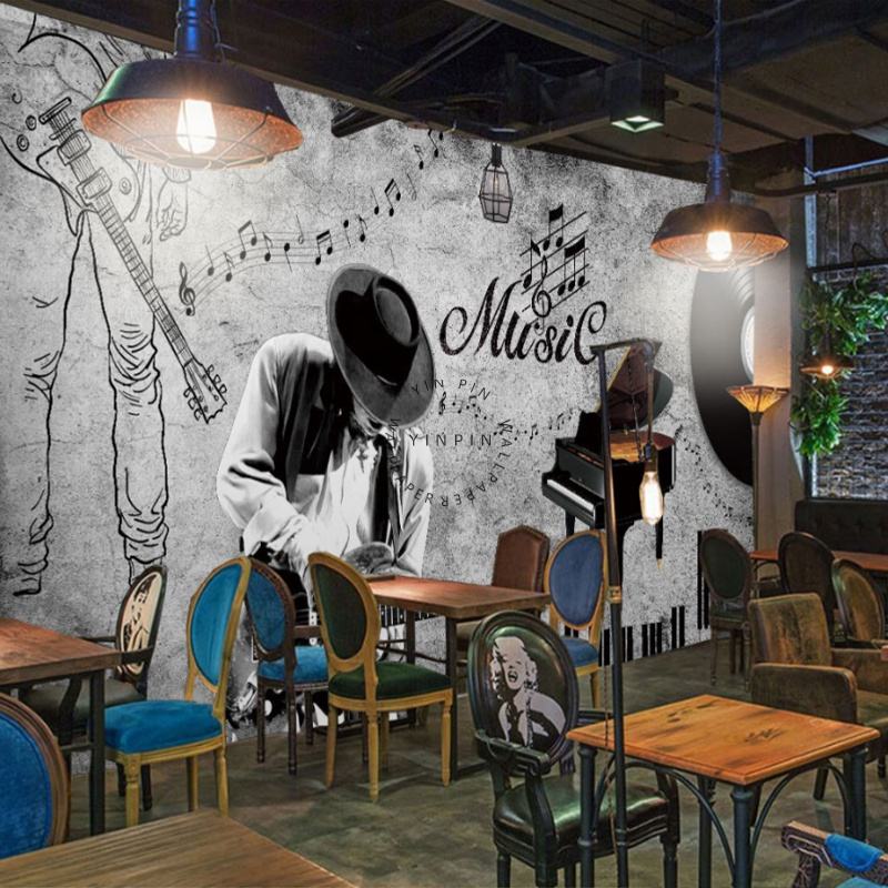 Papier peint extérieur de fond de musique de style industriel rétro pour bar-salon