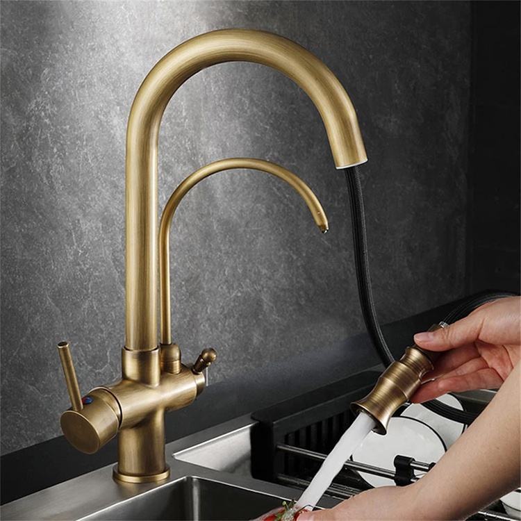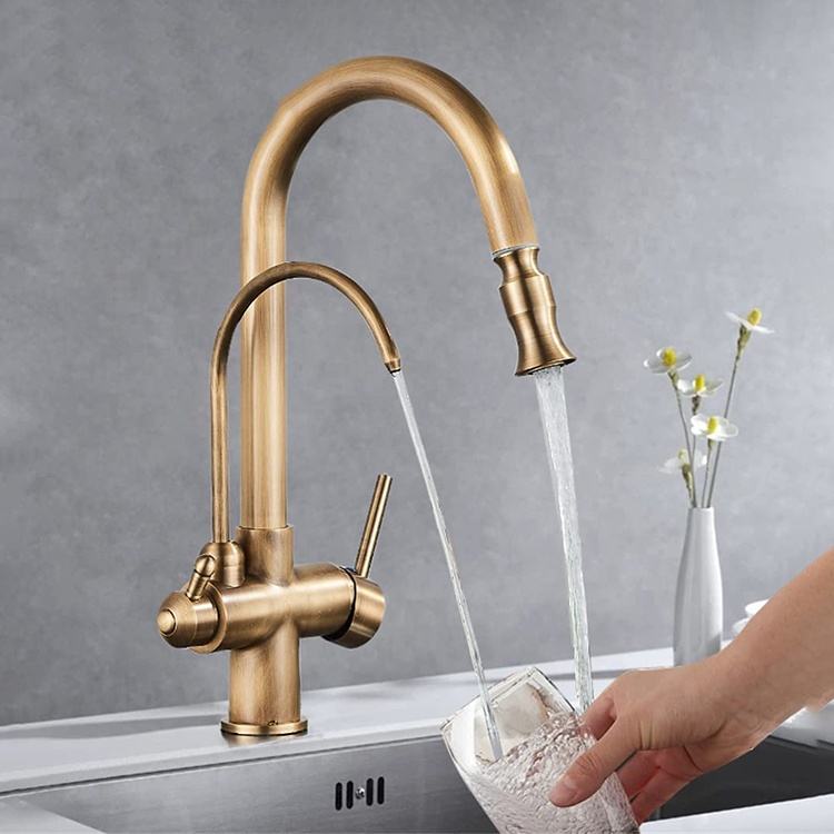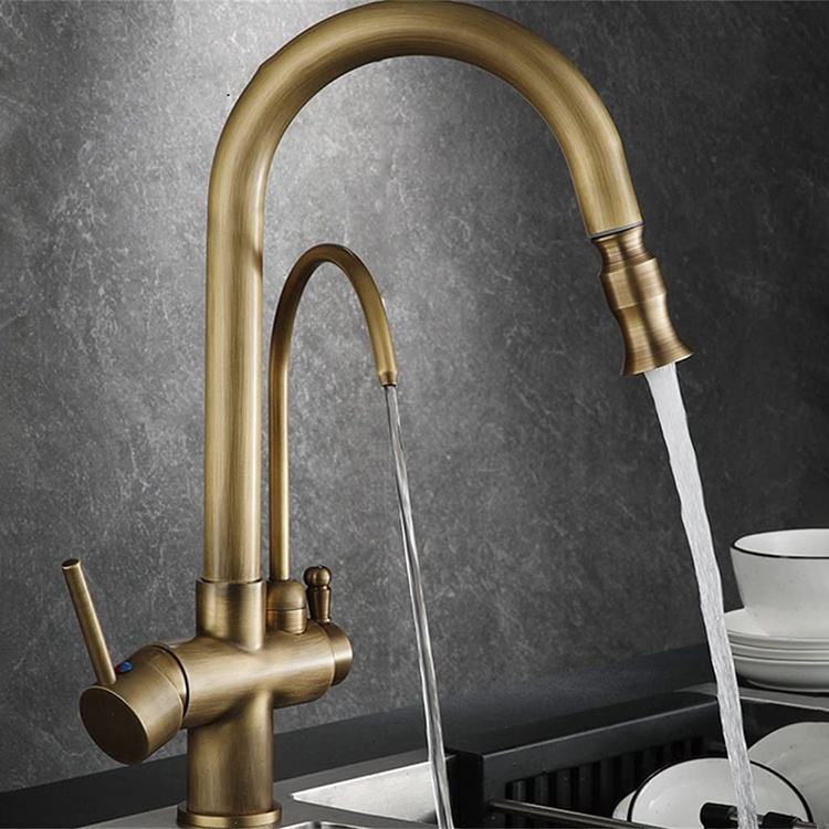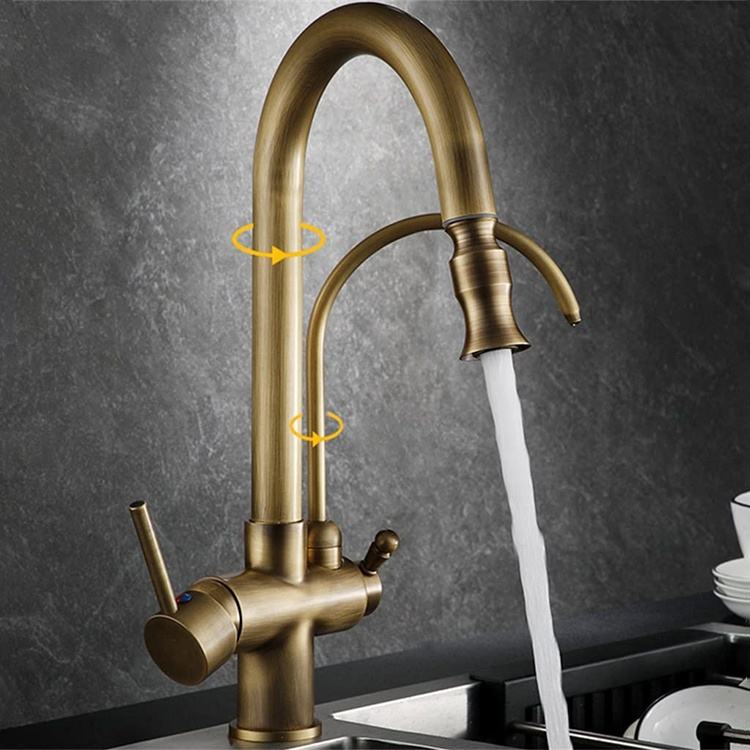 Robinets de cuisine rétro robinet de cuisine en laiton Antique à 3 voies avec filtre à eau purificateur