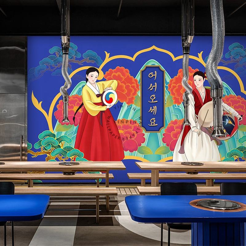 Murale ethnique coréenne rétro, style coréen, boutique de barbecue, restaurant de kimchi, papier peint