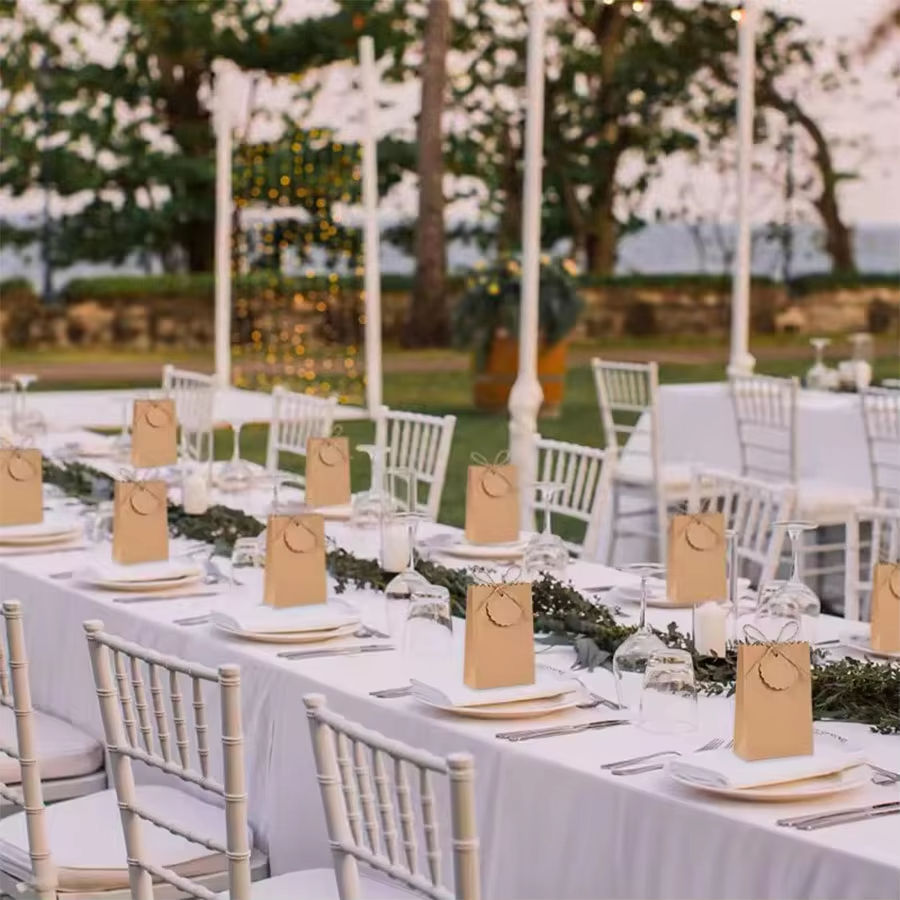 Sac cadeau rétro en papier kraft blanc marron biscuit faveur de mariage boîte à bonbons sac d'emballage alimentaire avec corde anniversaire déco