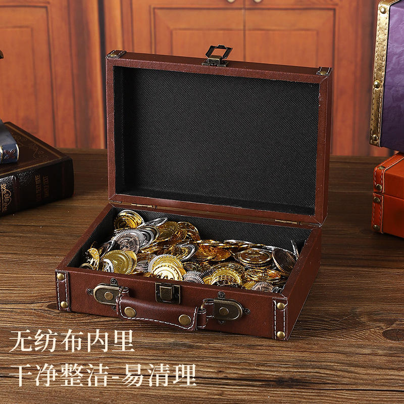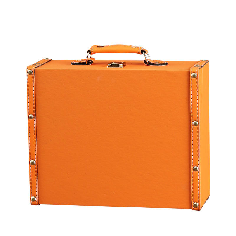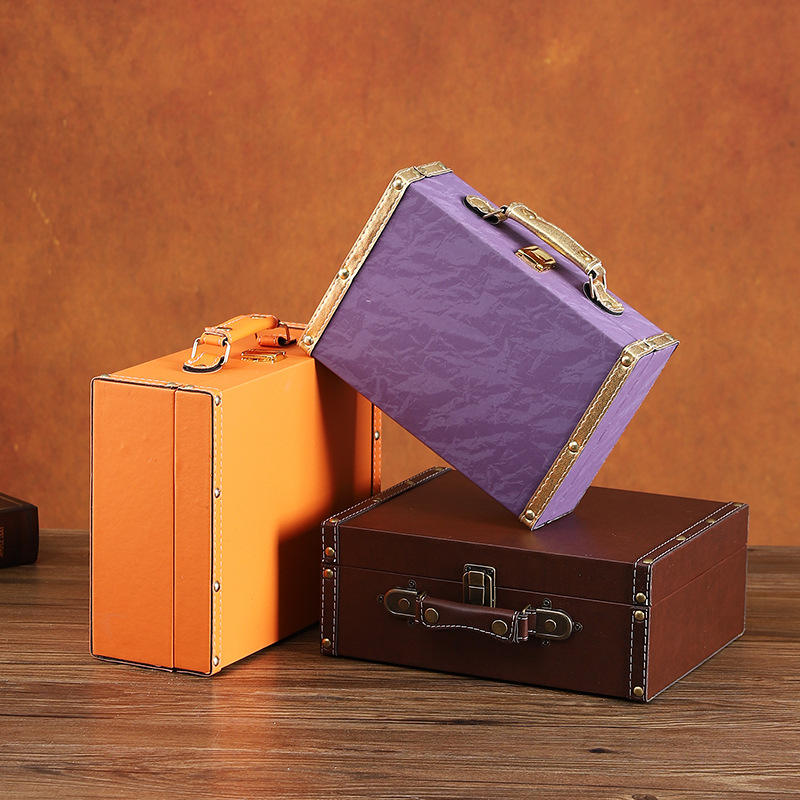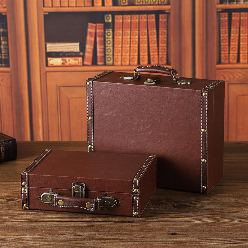 Boîte de rangement en cuir rétro, grande capacité, couvercle rabattable, organisateur de bijoux, étui décoratif pour la maison, couleur unie 1122A