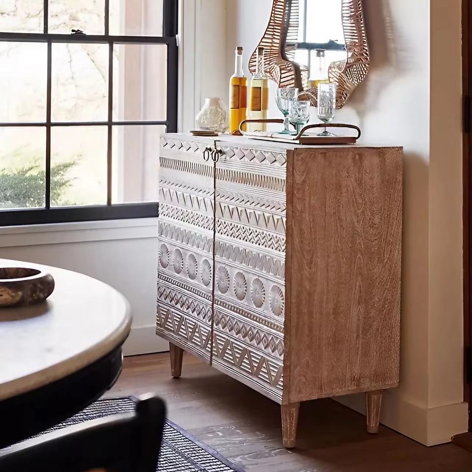 Buffet de rangement en bois massif de luxe rétro, multi-usages, 2 portes, 4 tiroirs de rangement, buffet vintage