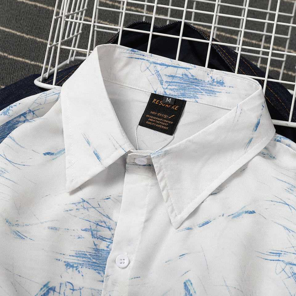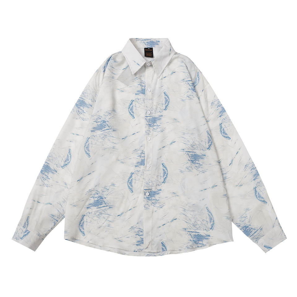 Chemise à manches longues pour homme, style rétro, motif floral en marbre, sensation haut de gamme, version coréenne, texture fluide et décontractée