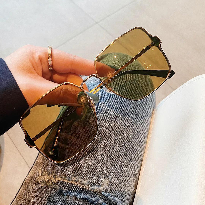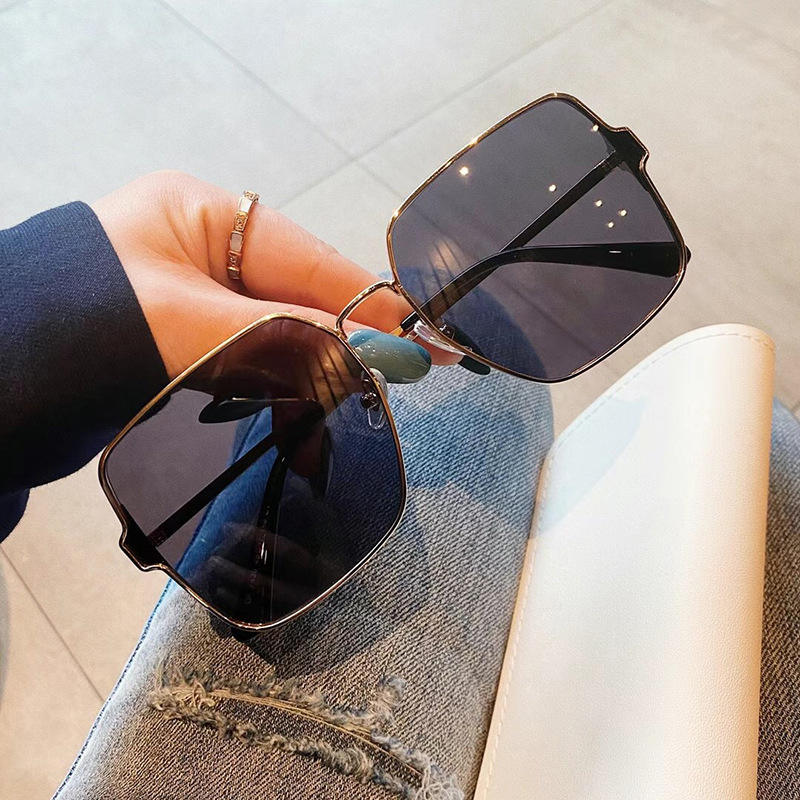 Lunettes de soleil rétro à monture carrée en métal pour femmes, couleur or, protection UV400, style streetwear tendance surdimensionné