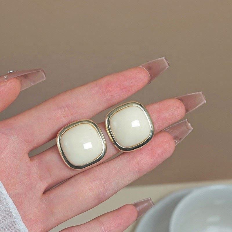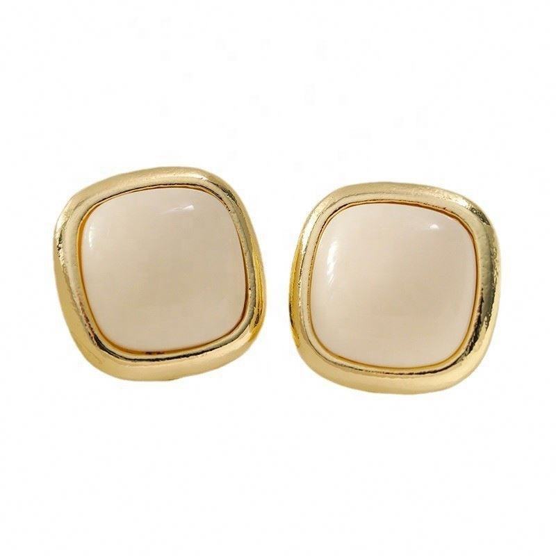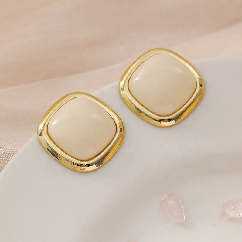 Boucles d'oreilles clous rétro en alliage de zinc plaqué or style perle pour femme, boucles d'oreilles Maillard en résine géométrique simple de qualité supérieure, style français