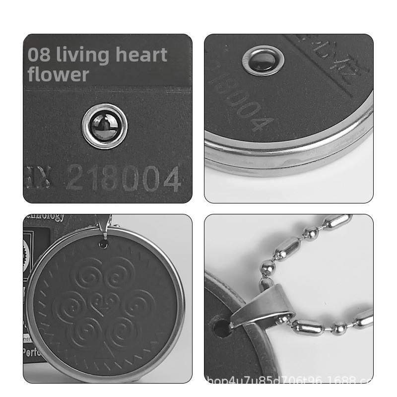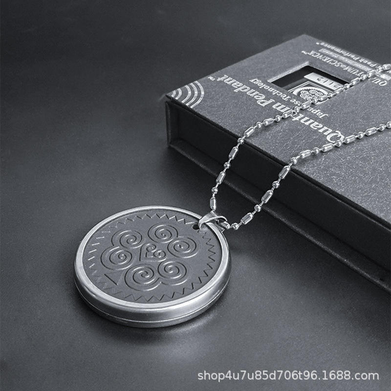 Pendentif anti-âge à ions négatifs en pierre volcanique et pierre Bian, rond, imprimé rétro, avec bordure métallique