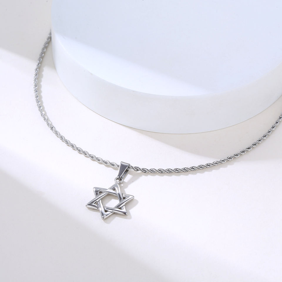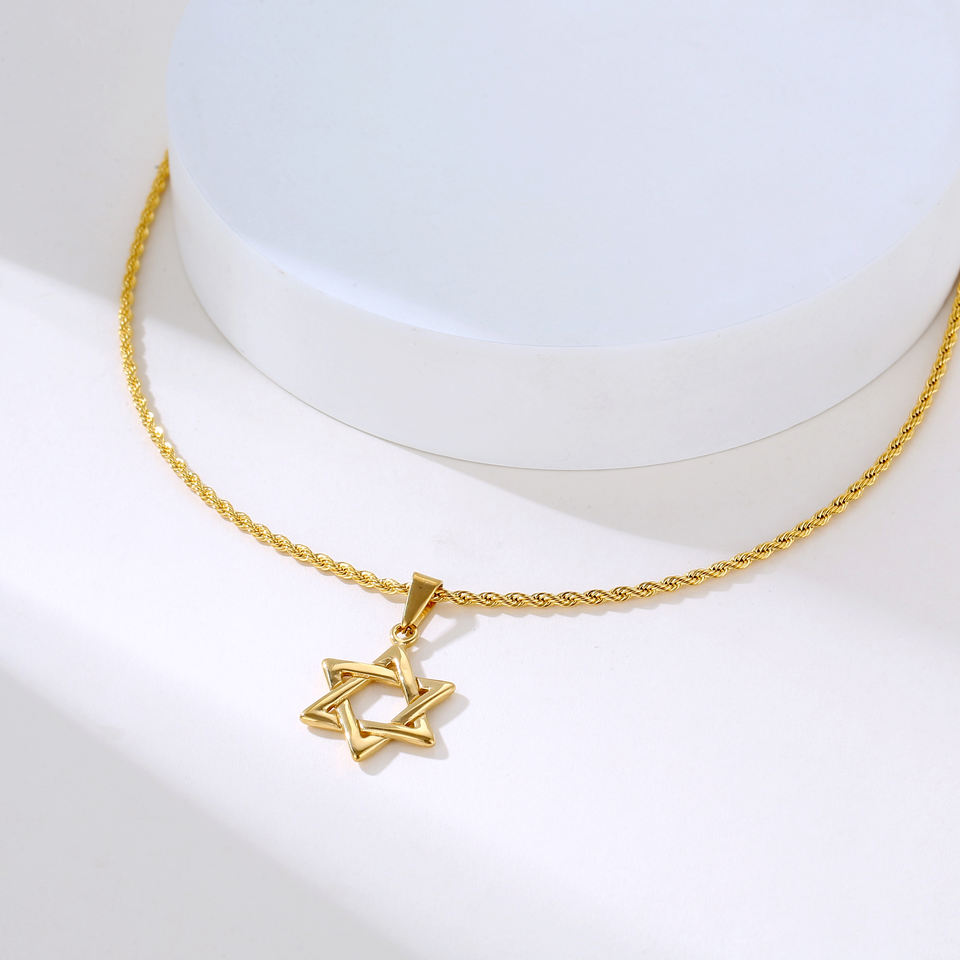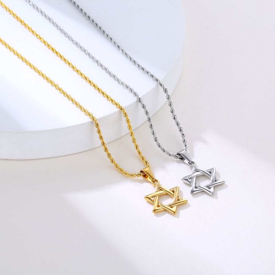 Collier Rétro Punk pour Hommes en Acier Inoxydable Plaqué Or 18 Carats Style Hiphop, Bijou Juif Personnalisé, Collier Religieux Étoile de David