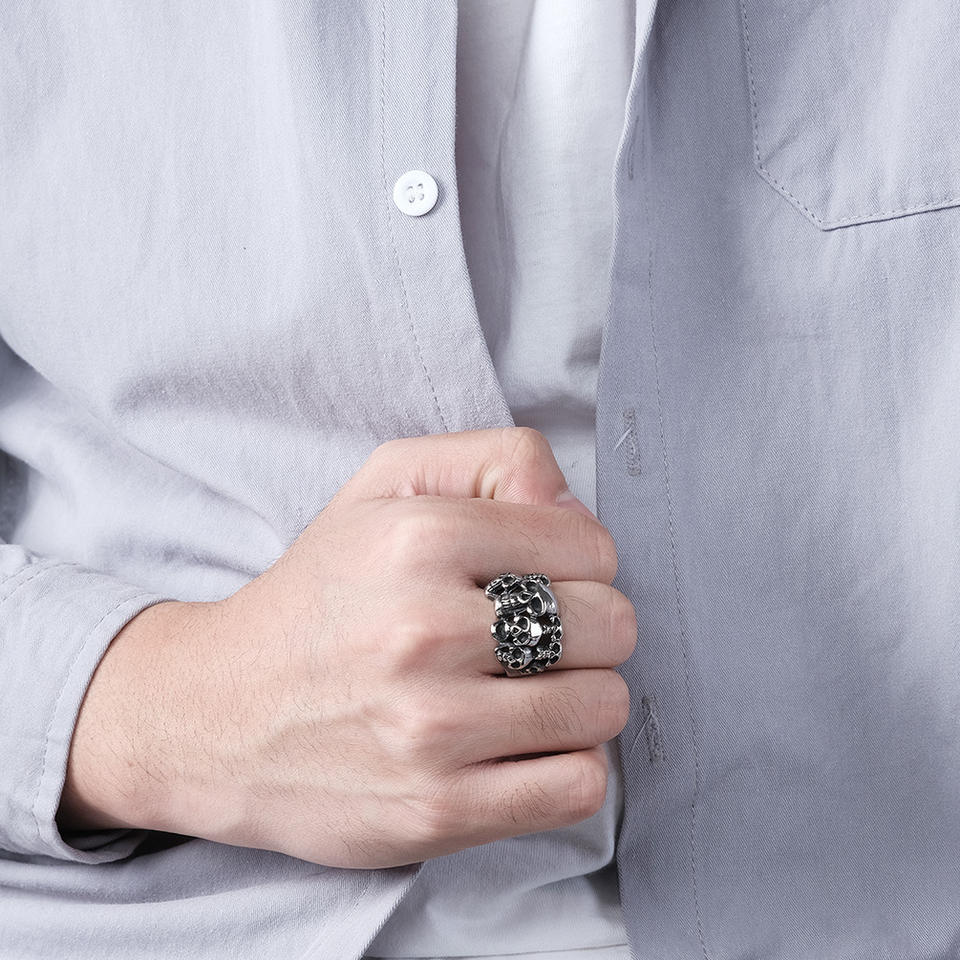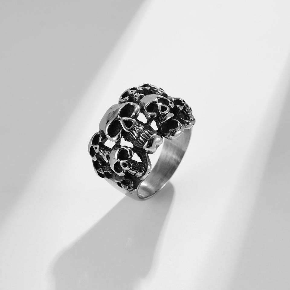 Bague rétro Punk en forme de crâne pour hommes, bijoux en acier noir pour l'index, cadeau