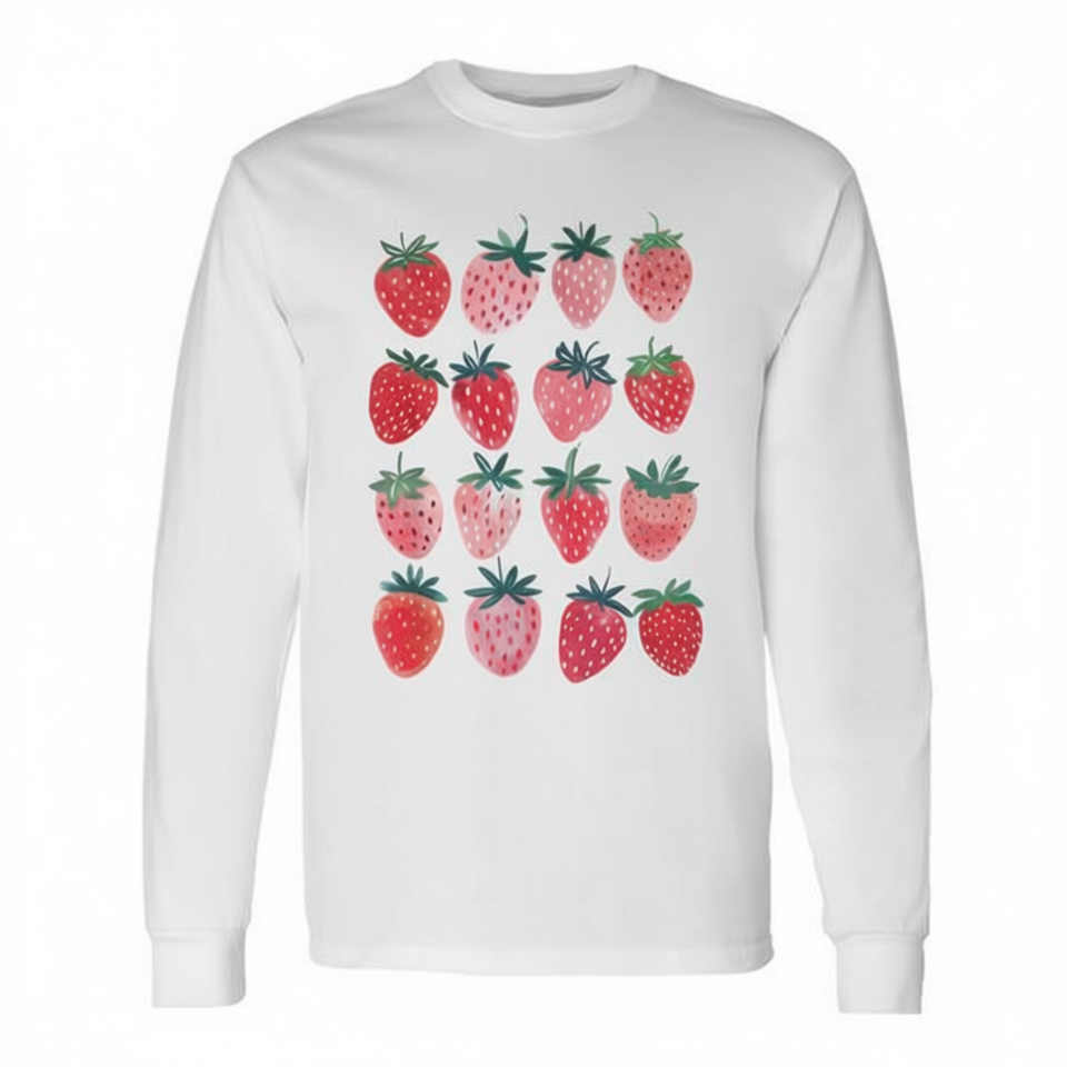 T-shirt rétro à manches longues avec motif de fruits rouges et de fraises, style Cottagecore