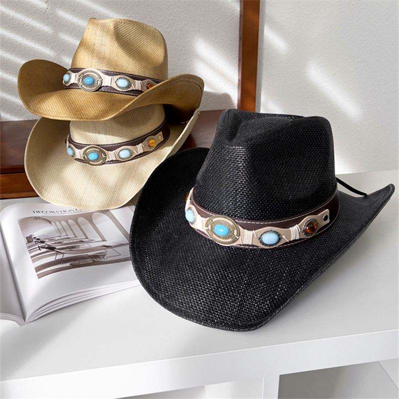 Chapeau de Cowboy sauvage de rodéo rétro Chapeaux de Cowboy occidentaux en paille enduits et formés classiques