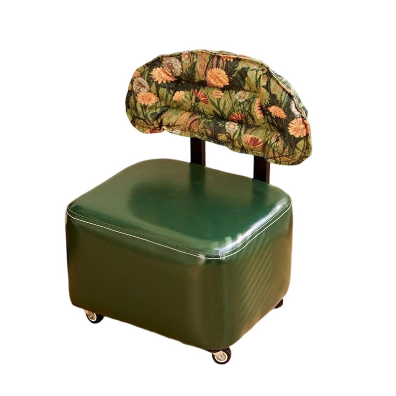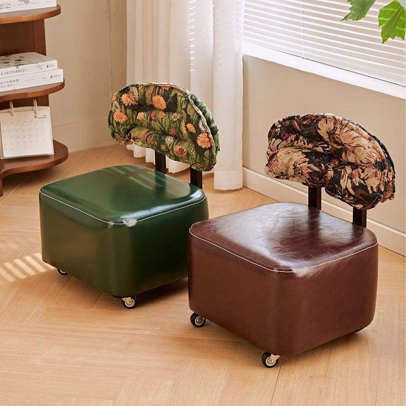 Tabouret rétro à roulettes avec dossier pivotant, tabouret à roulettes pour salon, siège pour changer de chaussures à usage domestique