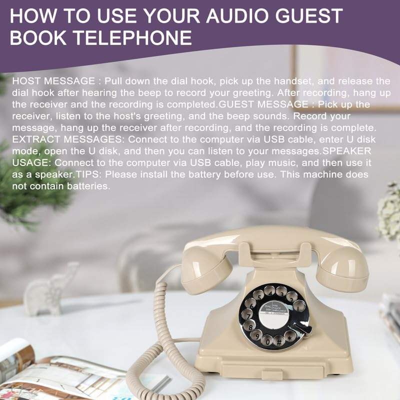 Livre de messages audio téléphonique de style rotatif rétro, livre de messages audio de mariage téléphone livre d'or téléphone livre d'or téléphone