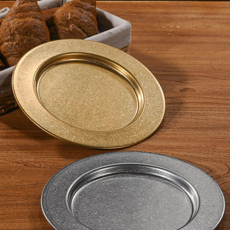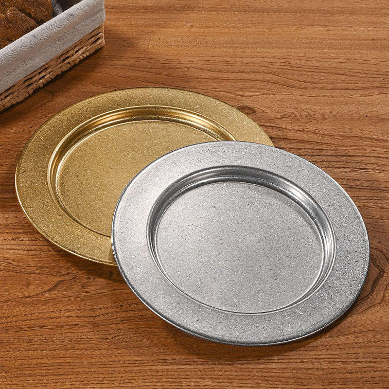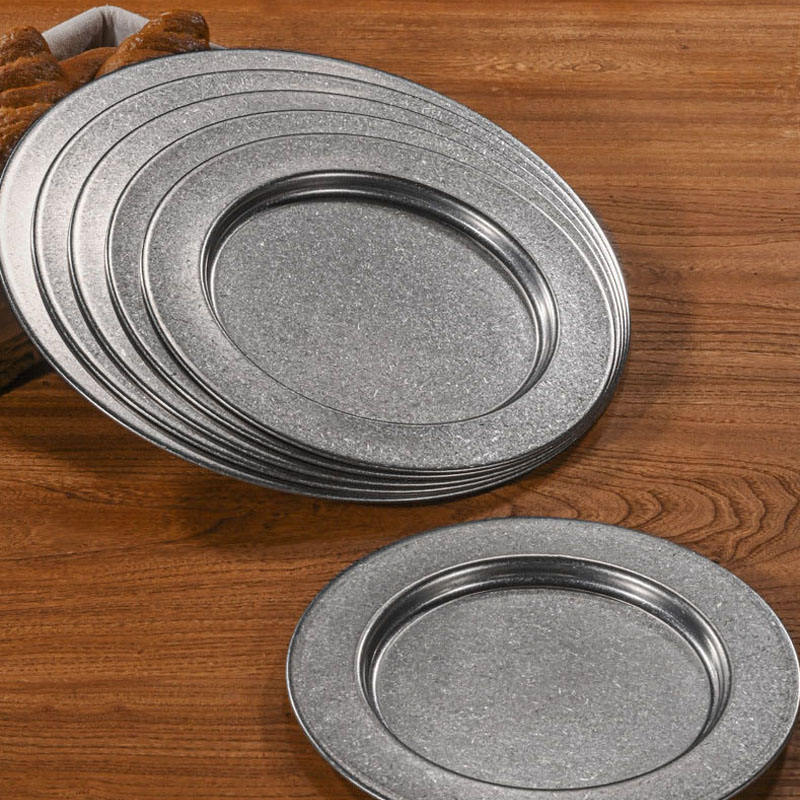 Retro Round Stainless Steel Plate Western Food Dinner Plates Platter Restaurant Tableware Outdoor Dish Household