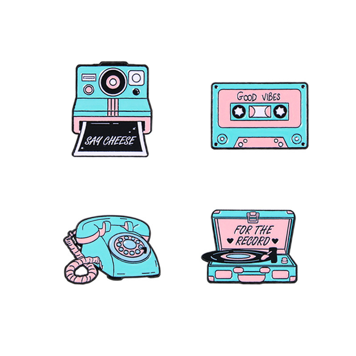 Rétro série caméra emblème Cassette pont lecteur CD téléphone broche broche en métal pour les hommes et les femmes tissu sac à dos décoration