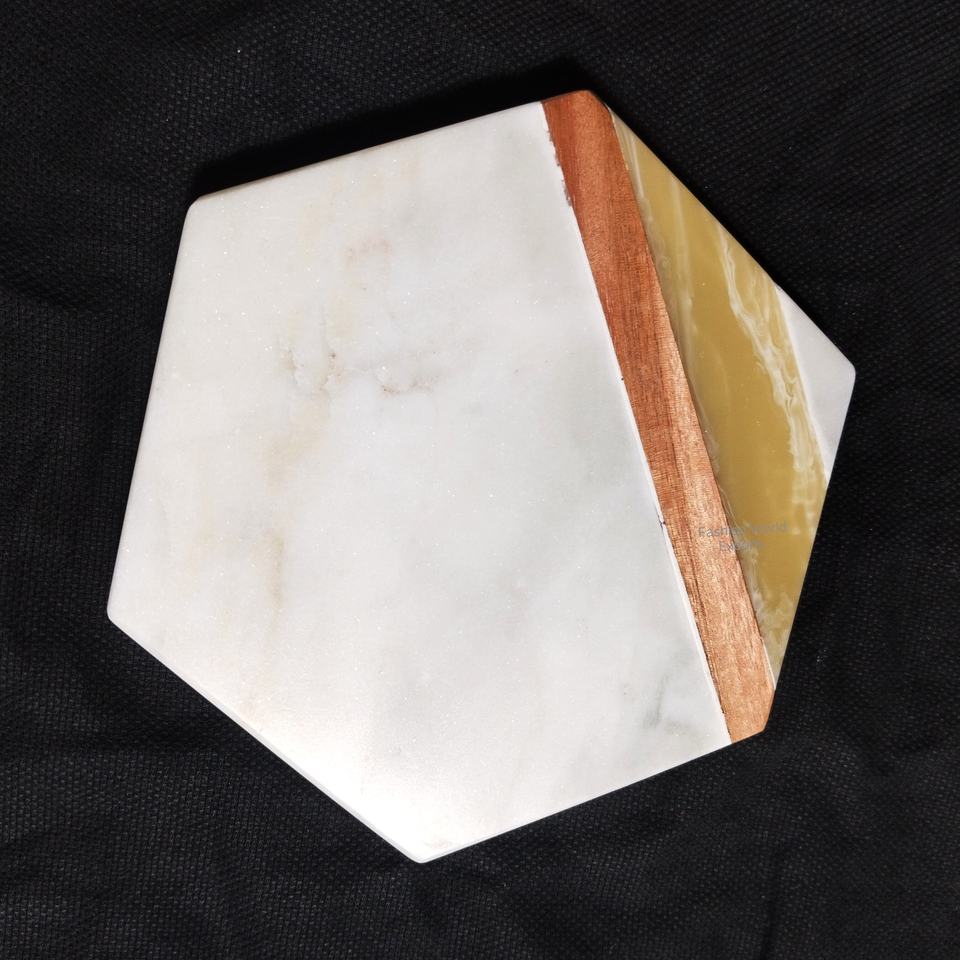 Ensemble de 4 sous-verres rétro esthétiques en marbre avec incrustation de bois, écologiques, diamètre 100 mm, fonctionnels, pour la décoration des boissons, en pierre
