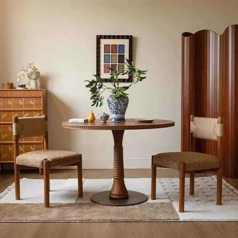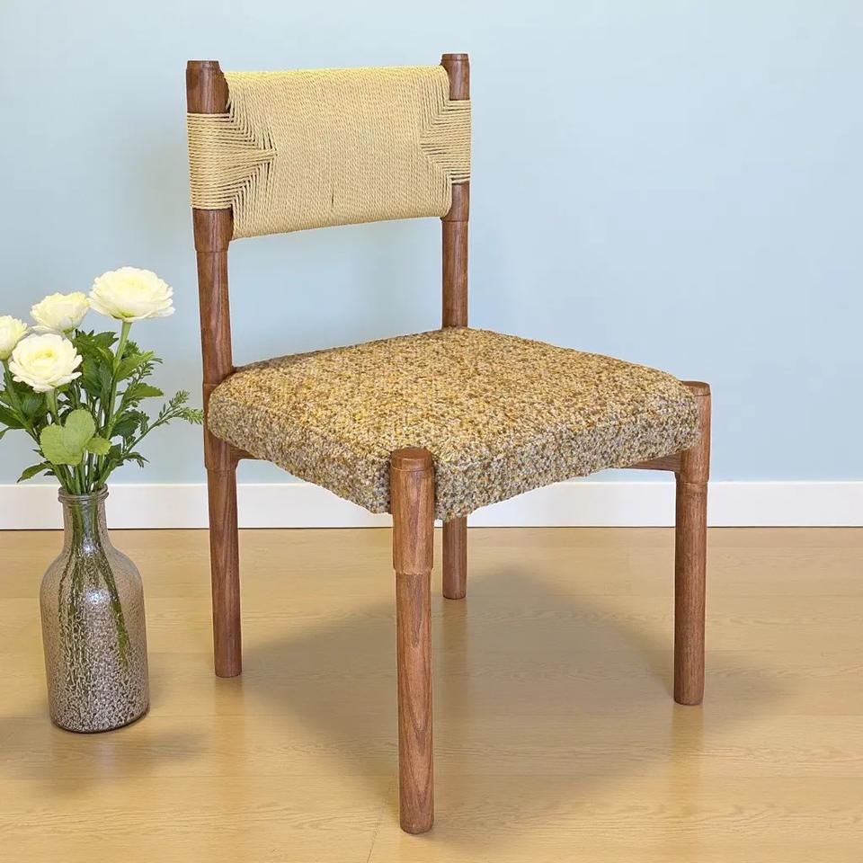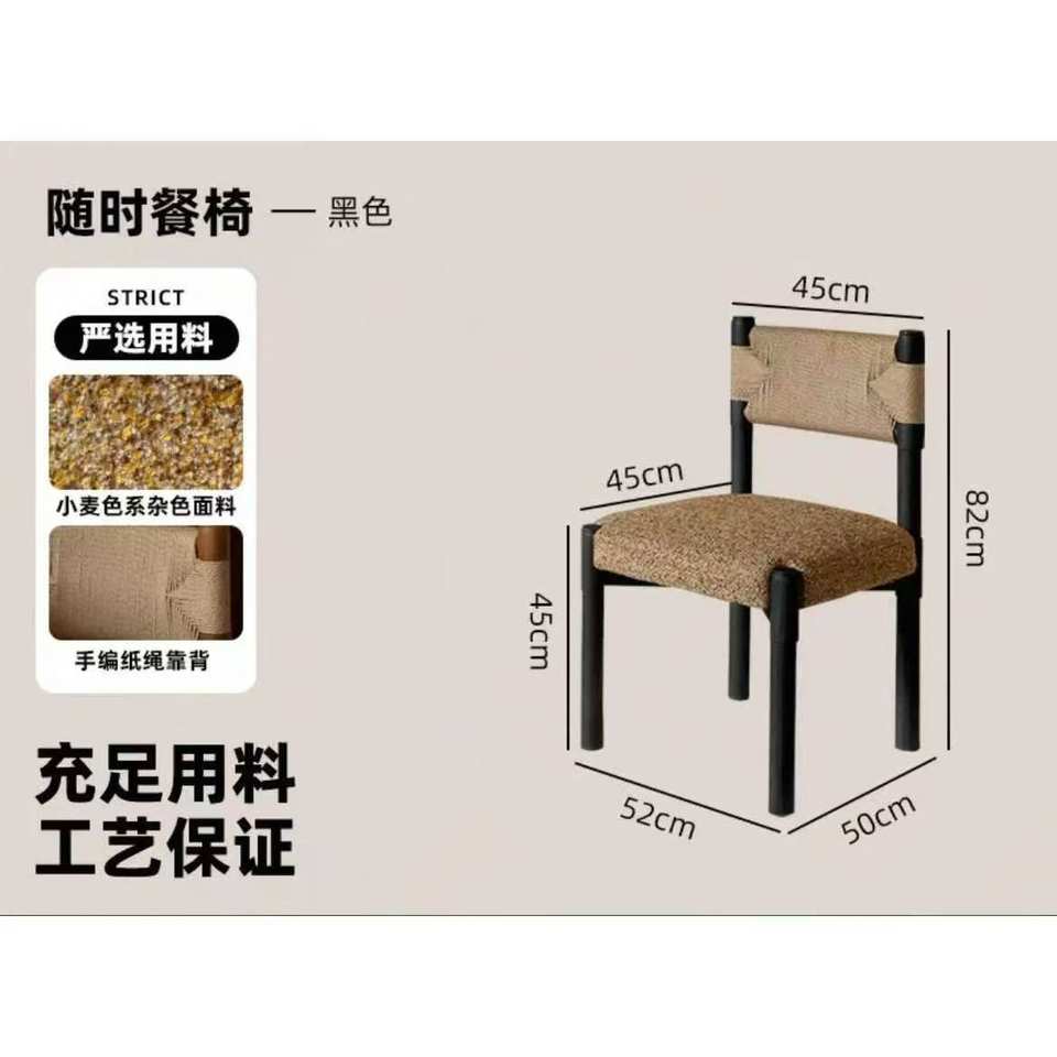 Chaise de salle à manger rétro en bois massif avec dossier en corde et assise rembourrée pour adultes