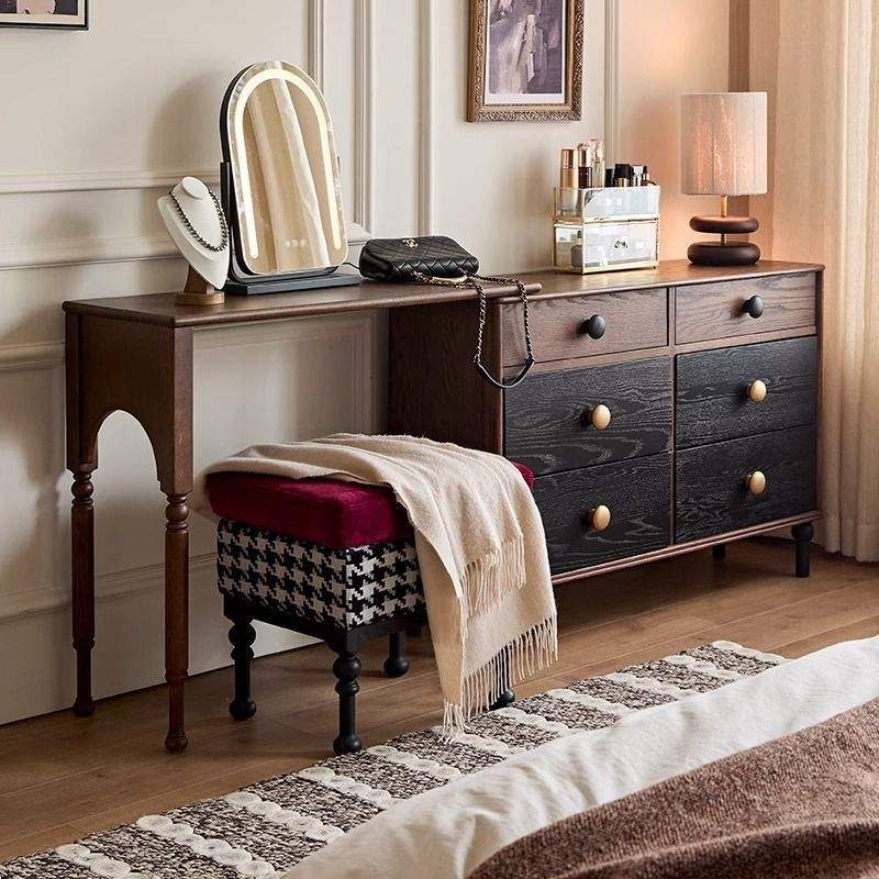 Retro Solid Wood Dressing Table With Drawers Extendable Storage Bedroom Living Room Cabinet