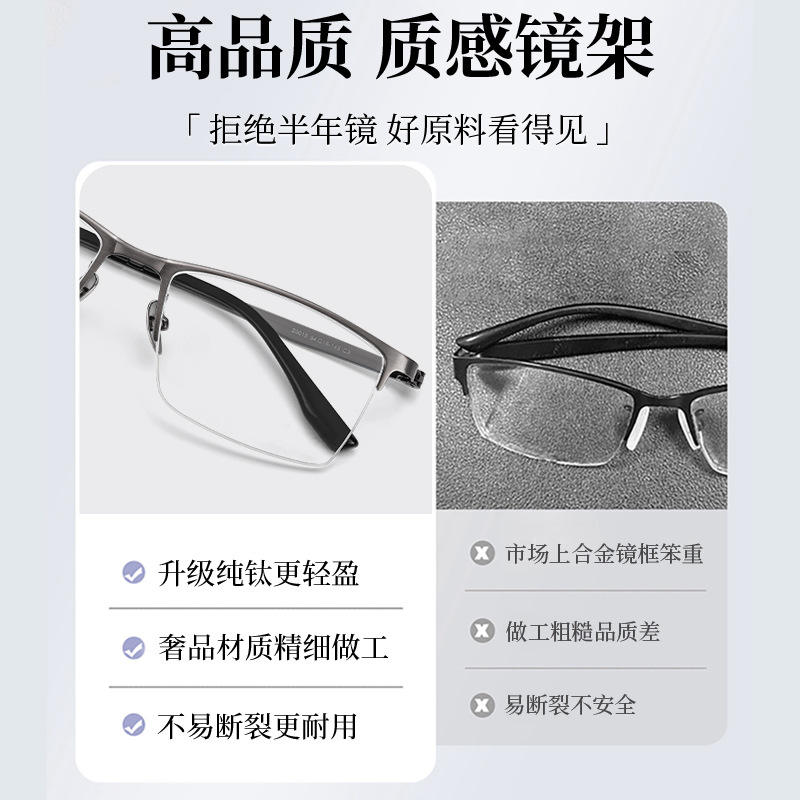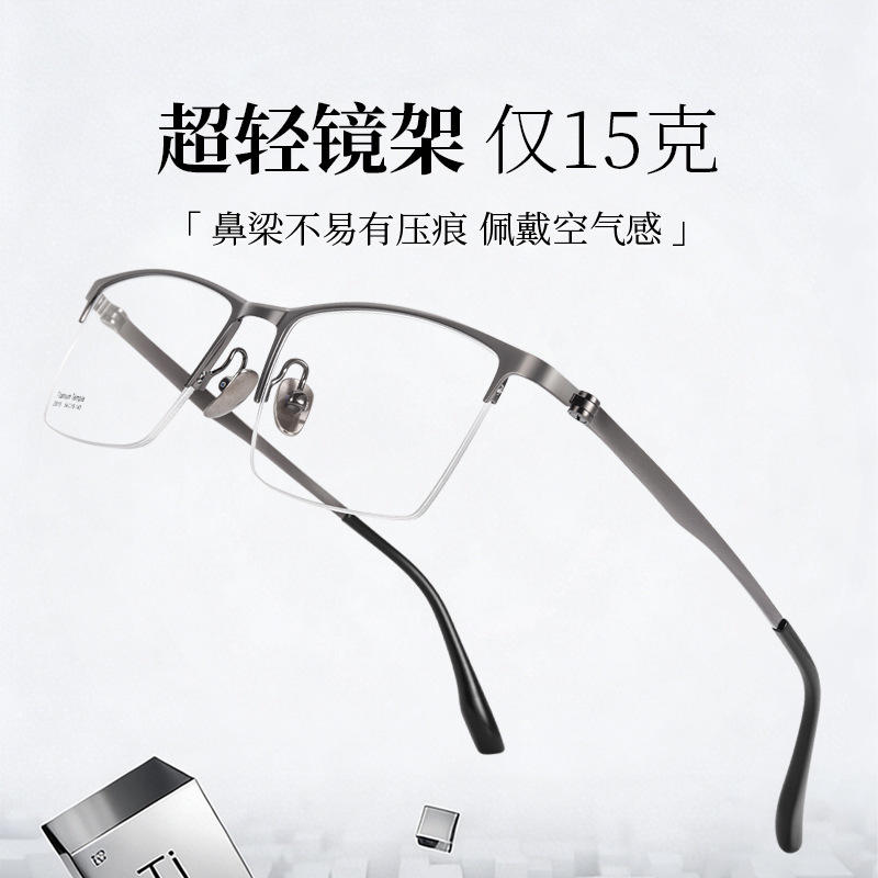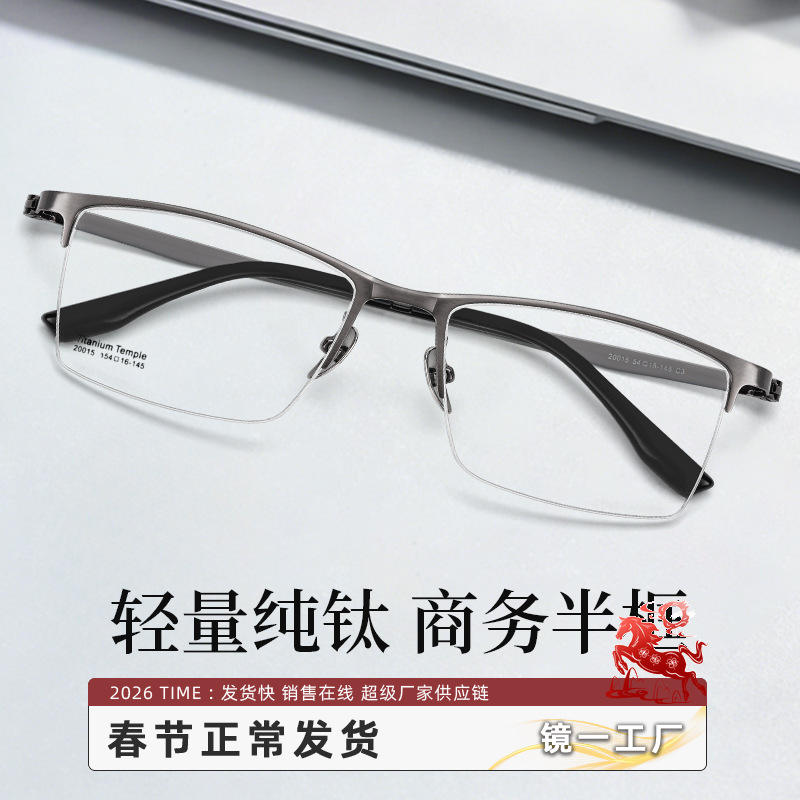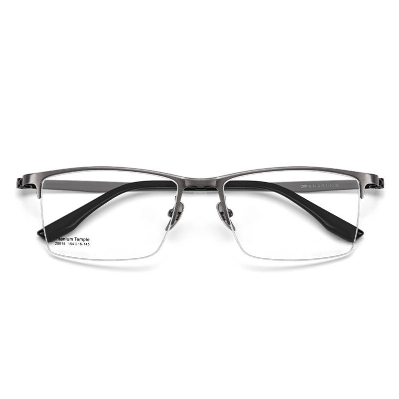 Monture de lunettes rétro carrée demi-cerclée en titane 20015, légère, pour hommes, verres correcteurs, design en titane pur