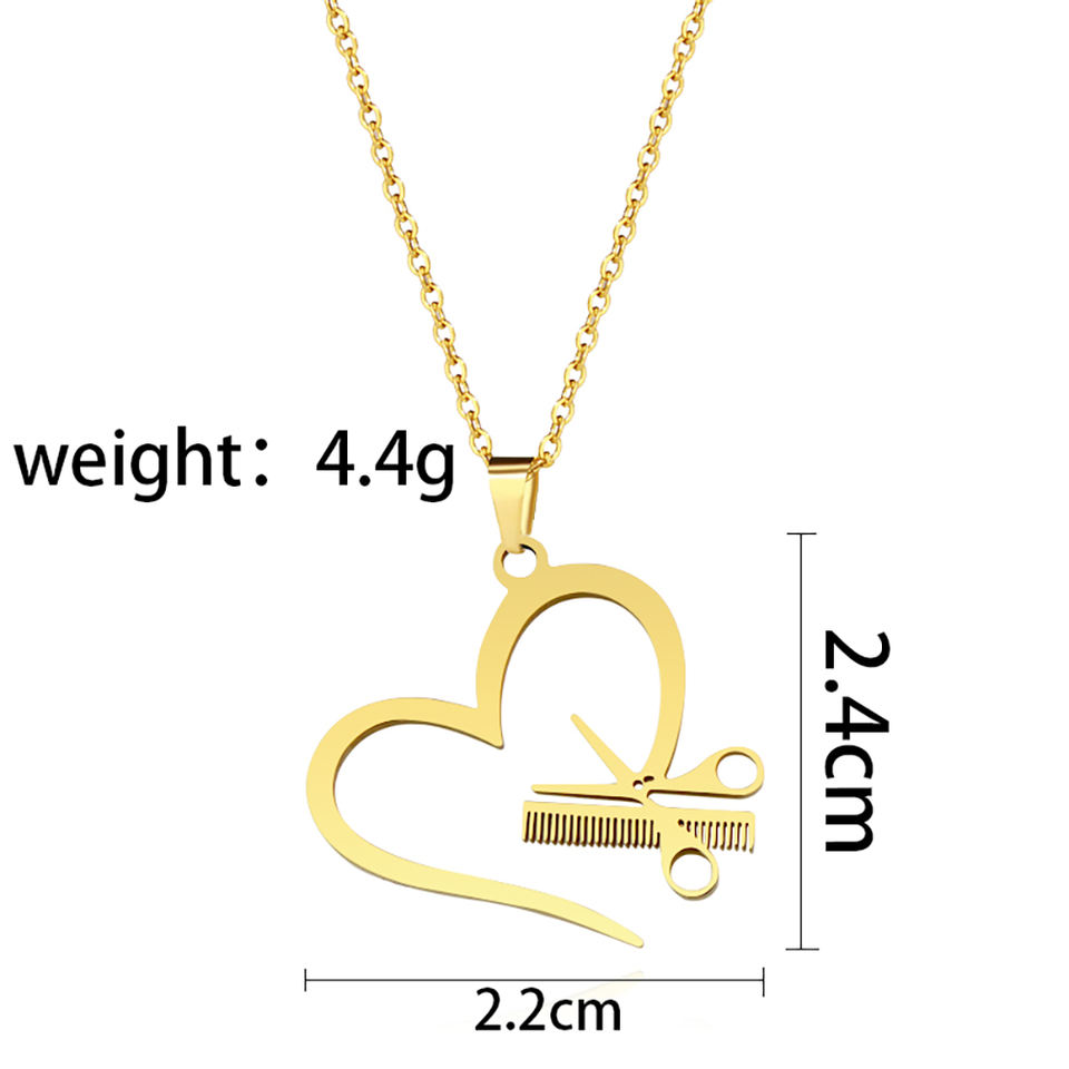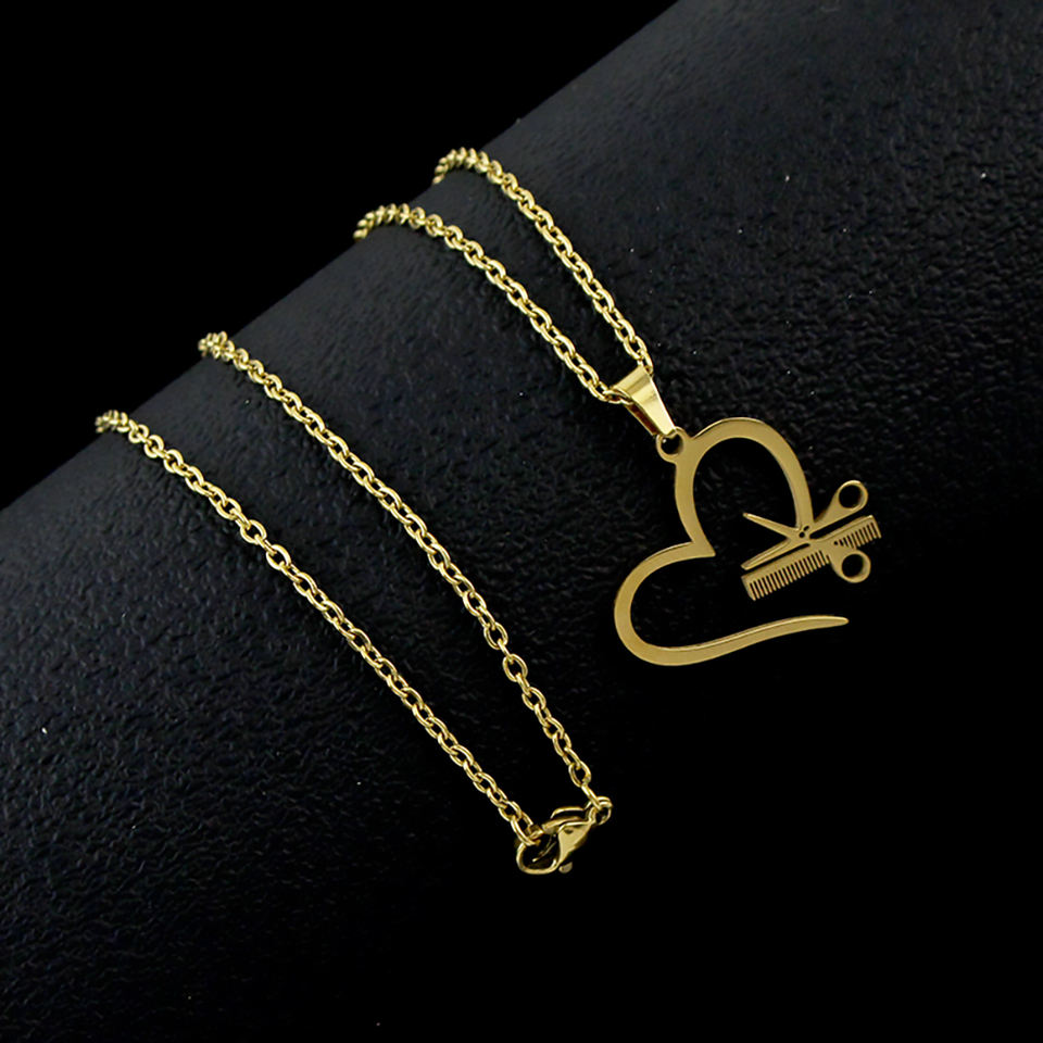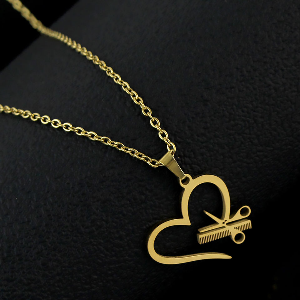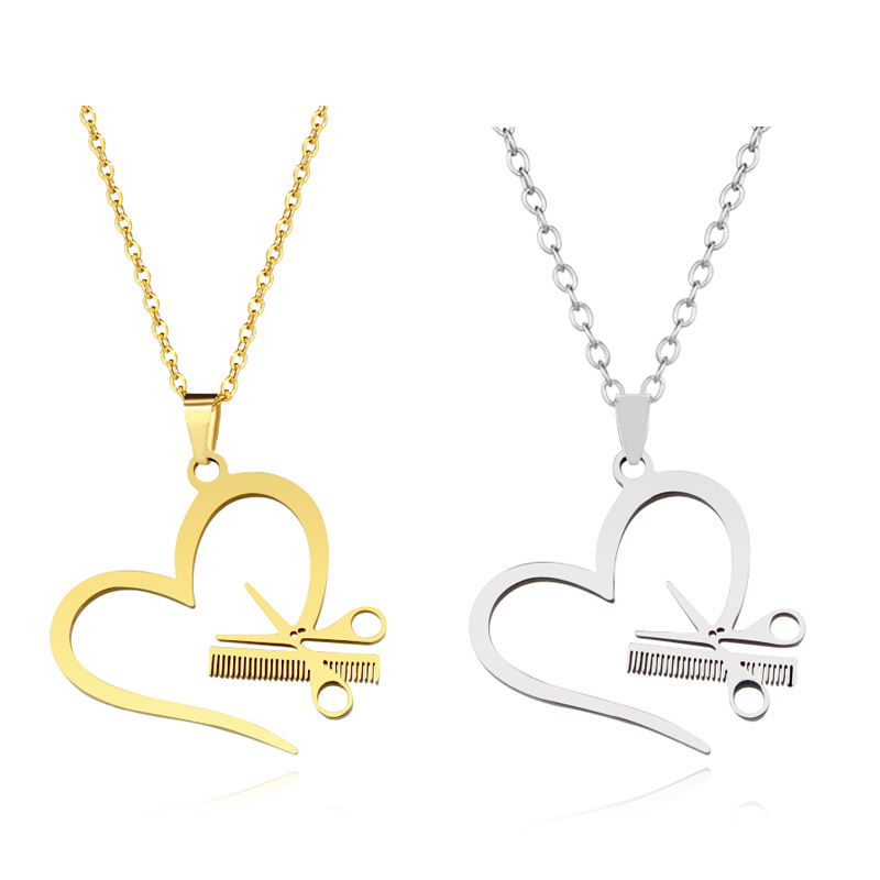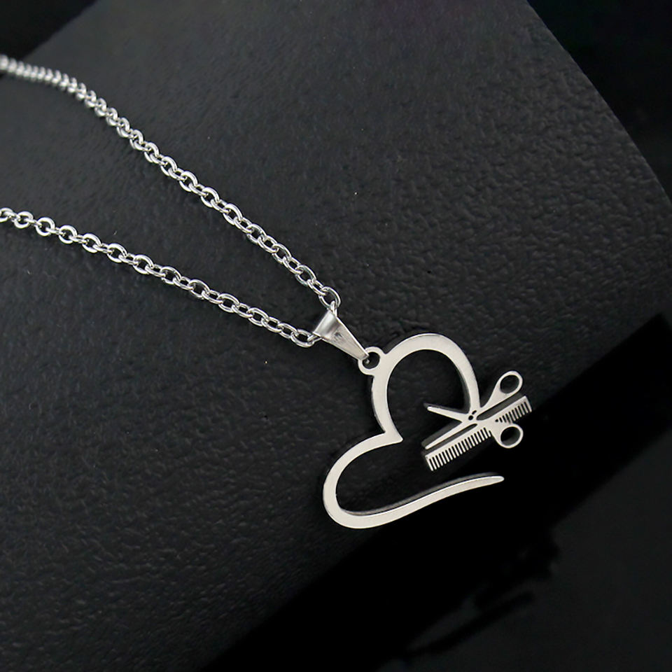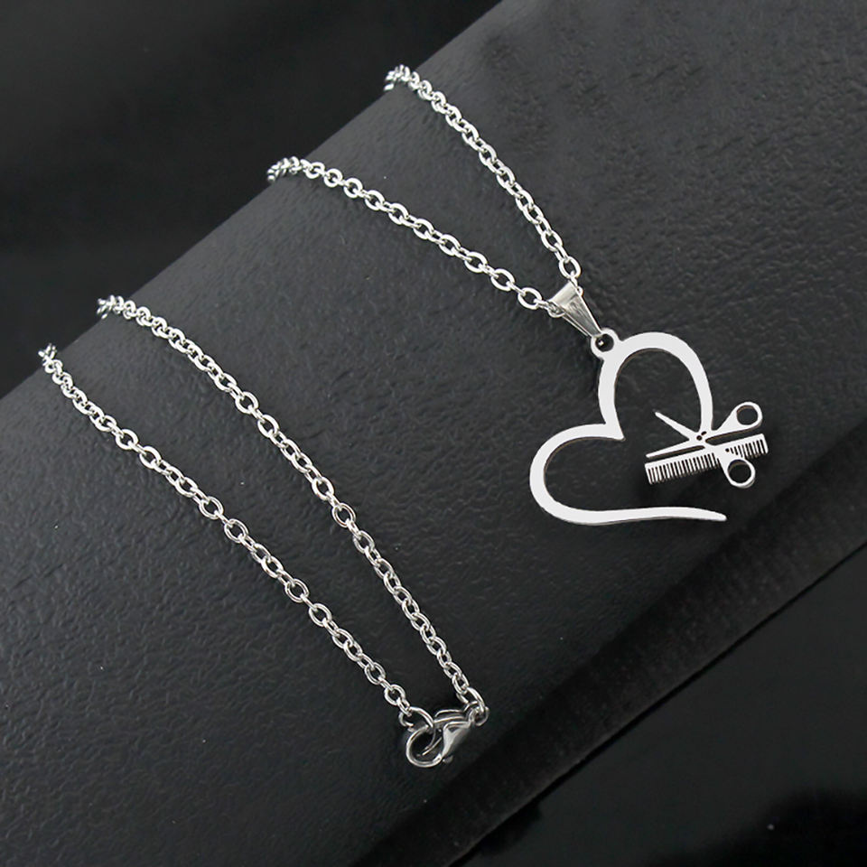 Collier pendentif en acier inoxydable rétro en forme de cœur, style hip-hop, lavage, coupe, accessoires de bijoux pour coiffeur, cadeau pour les amis