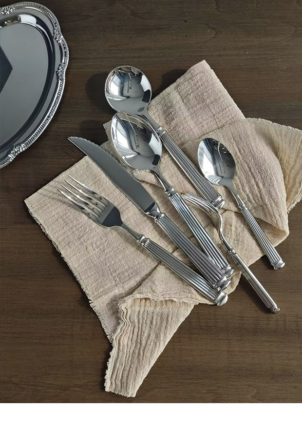 Ensemble de couteau, fourchette et cuillère à steak en acier inoxydable 304 de style rétro avec fourchettes à dessert et à spaghetti, design colonne romaine antique, cadeau quotidien