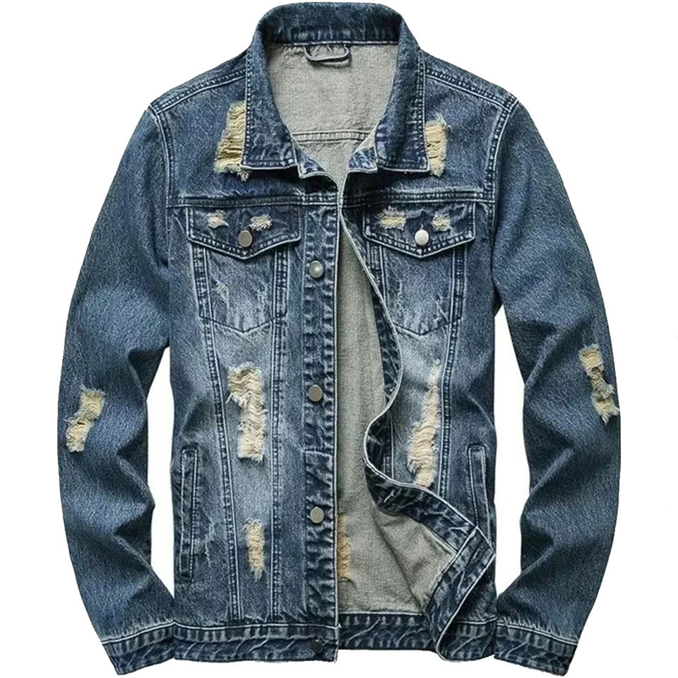 Veste en jean rétro pour homme, style streetwear, bleu, fermeture boutonnée, manteau décontracté de haute qualité
