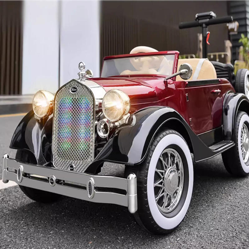 Voiture électrique rétro pour enfants, 4 roues, télécommande, jouet en plastique, design classique, pour les enfants de 2 à 4 ans