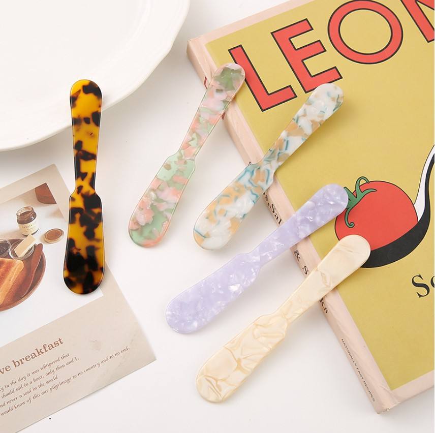 Retro Style French Dessert Spoon Dinnerware Acrylic Cake Ice Cream Spoon Jam Butter Cutter Lovely Tableware Cute Spoon Knife Set