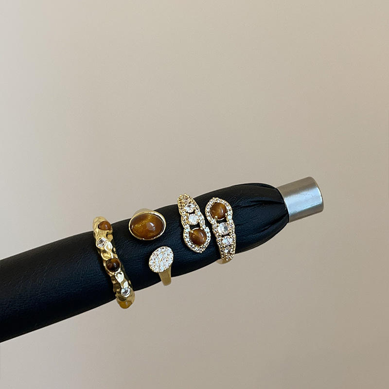 Bague ouverte pour femme de style rétro, en œil de tigre de haute qualité, en métal, personnalité unique, mode, assortie à tout, en cuivre