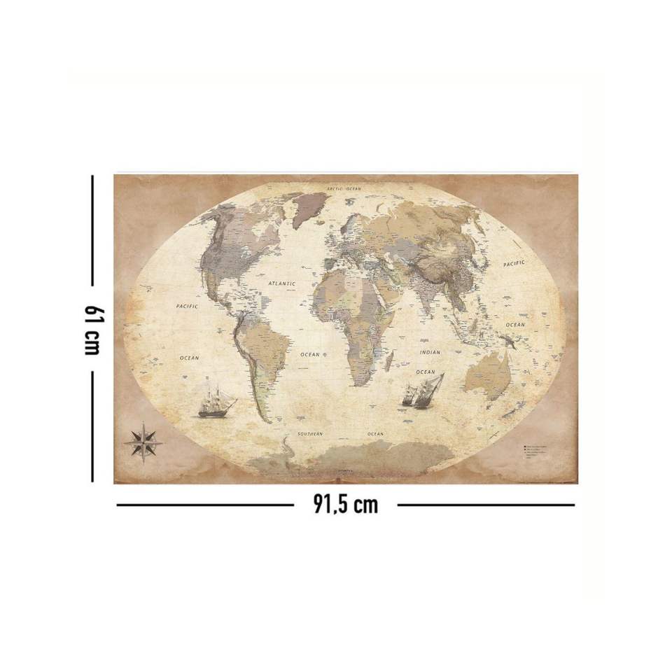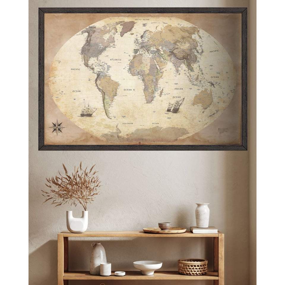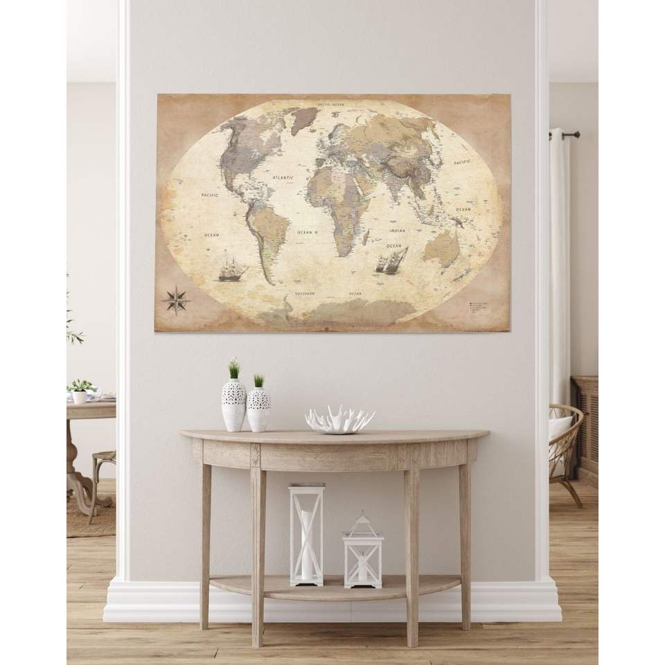 Affiche de carte du monde de style rétro, carte murale décorative