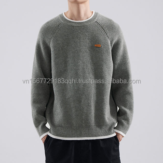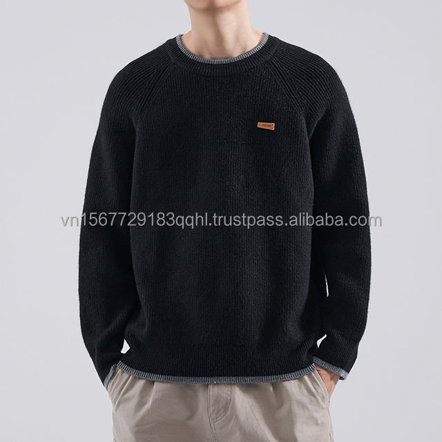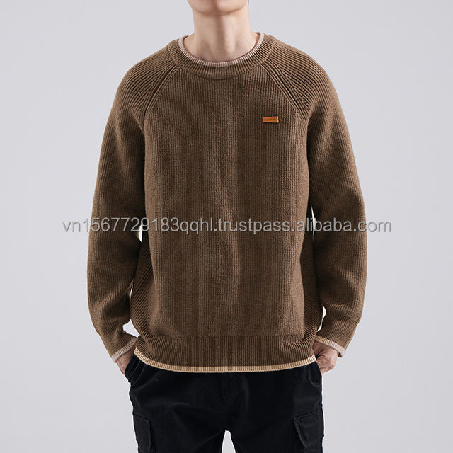 Pull Rétro Homme Automne Hiver Style Décontracté Chic Col Rond Décontracté pour Adolescent Sous-vêtement Tricoté