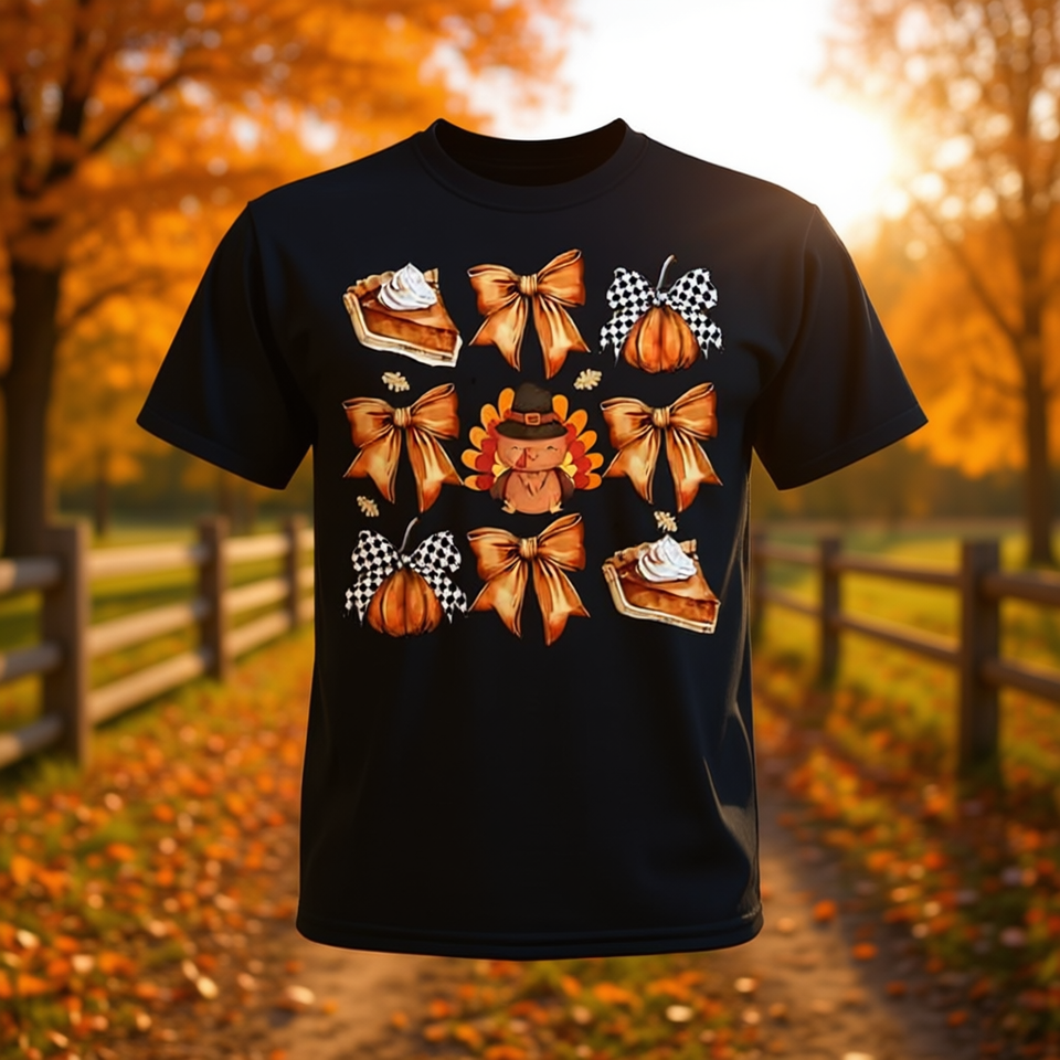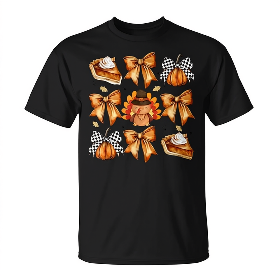 T-shirt rétro de Thanksgiving avec nœud en forme de citrouille et d'oiseau de la Turquie
